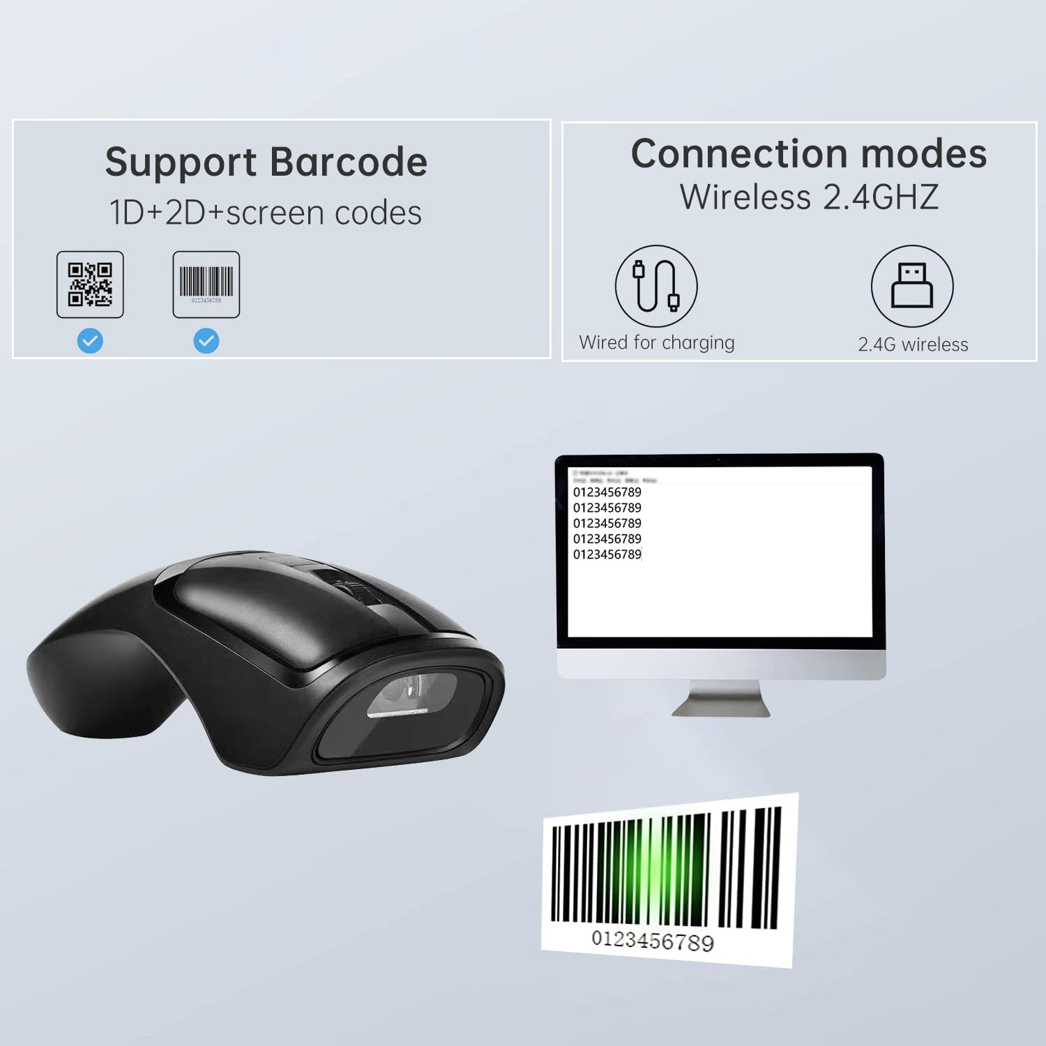 New Wireless Mouse Barcode Scanner, 2-in-1 Design 2D Handheld Barcode Scanner with Wireless Mouse Functions for POS System,Store,Supermarket, Warehouse.(Black)
