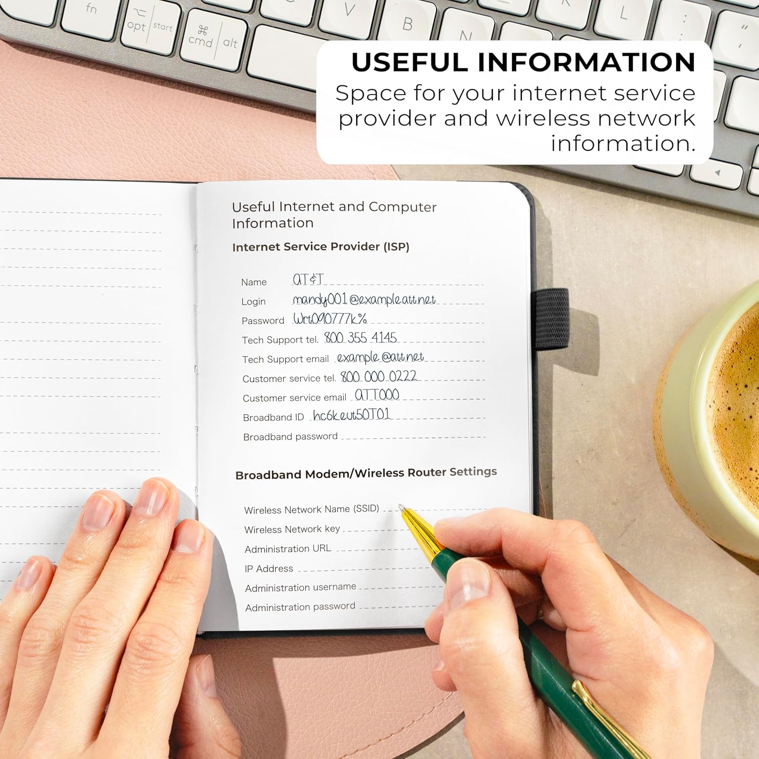 - ELEGANT, SMART, PRACTICAL & SECURE PASSWORD ORGANIZATION - This password keeper book has been designed to be anonymous without an obvious title on the cover. For added security there is space to write hints instead of the password itself.