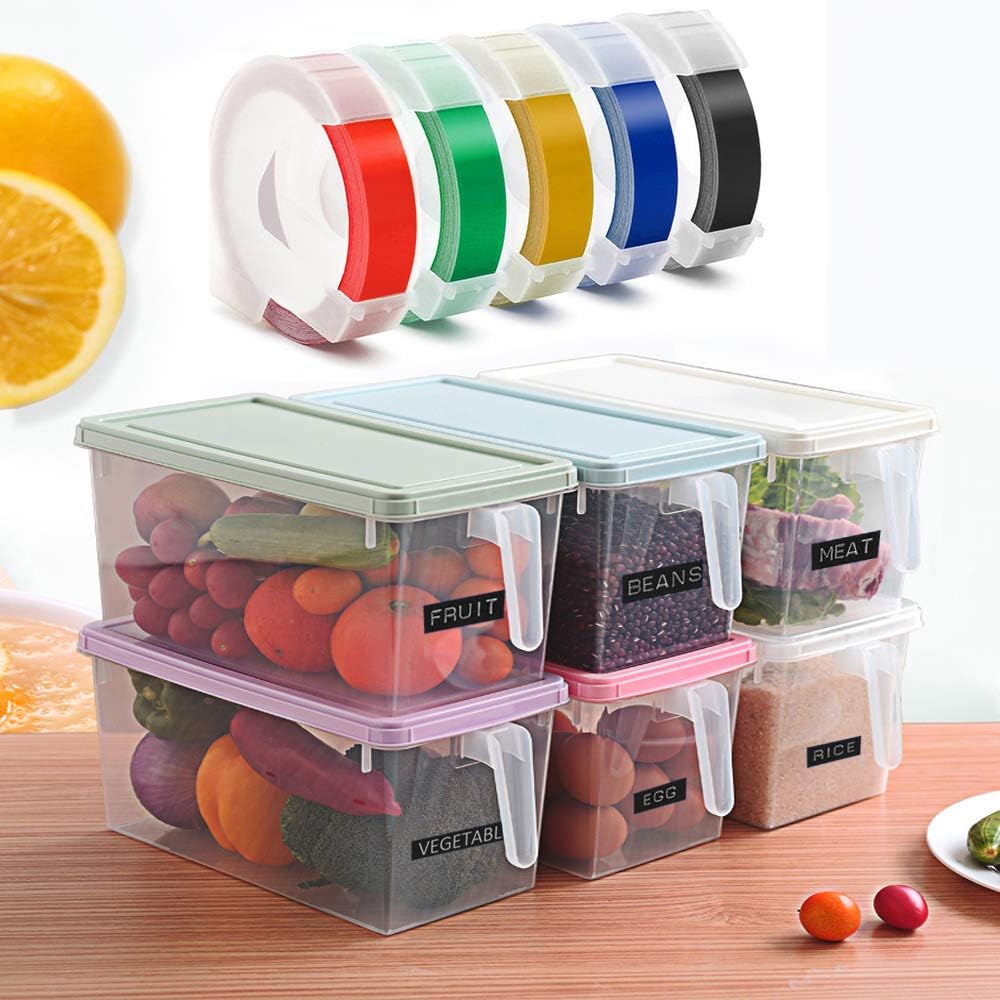 - Package inclues: 5 Pack 3/8-inch x 9.8-foot roll, white print on Black/Red/Blue/Yellow/Green tape