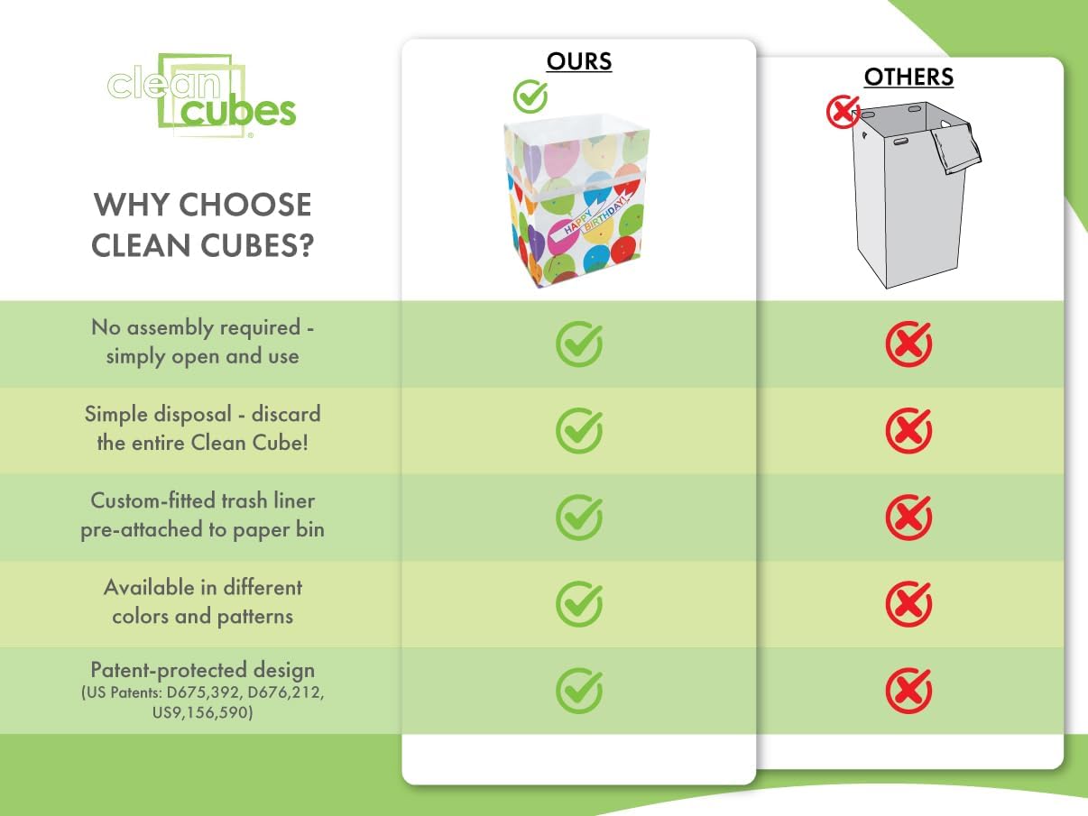 - ✅【EFFORTLESS CLEANUP & DISPOSAL】Simply unfold, use, and toss — keep your event clean and mess-free without extra effort. Clean Cubes are disposable recycling bins and trash cans with a patent-protected design and custom-fitted trash liner in each bin.