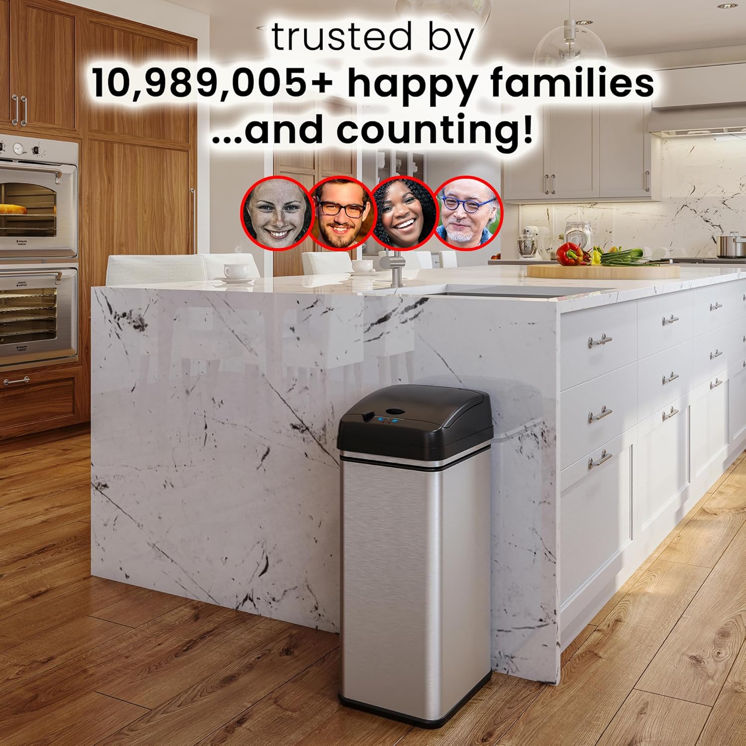 - 100% TOUCHLESS & HYGIENIC – Just the motion of your hand opens the lids automatically! This touchless trash can is the hygienic and convenient choice.