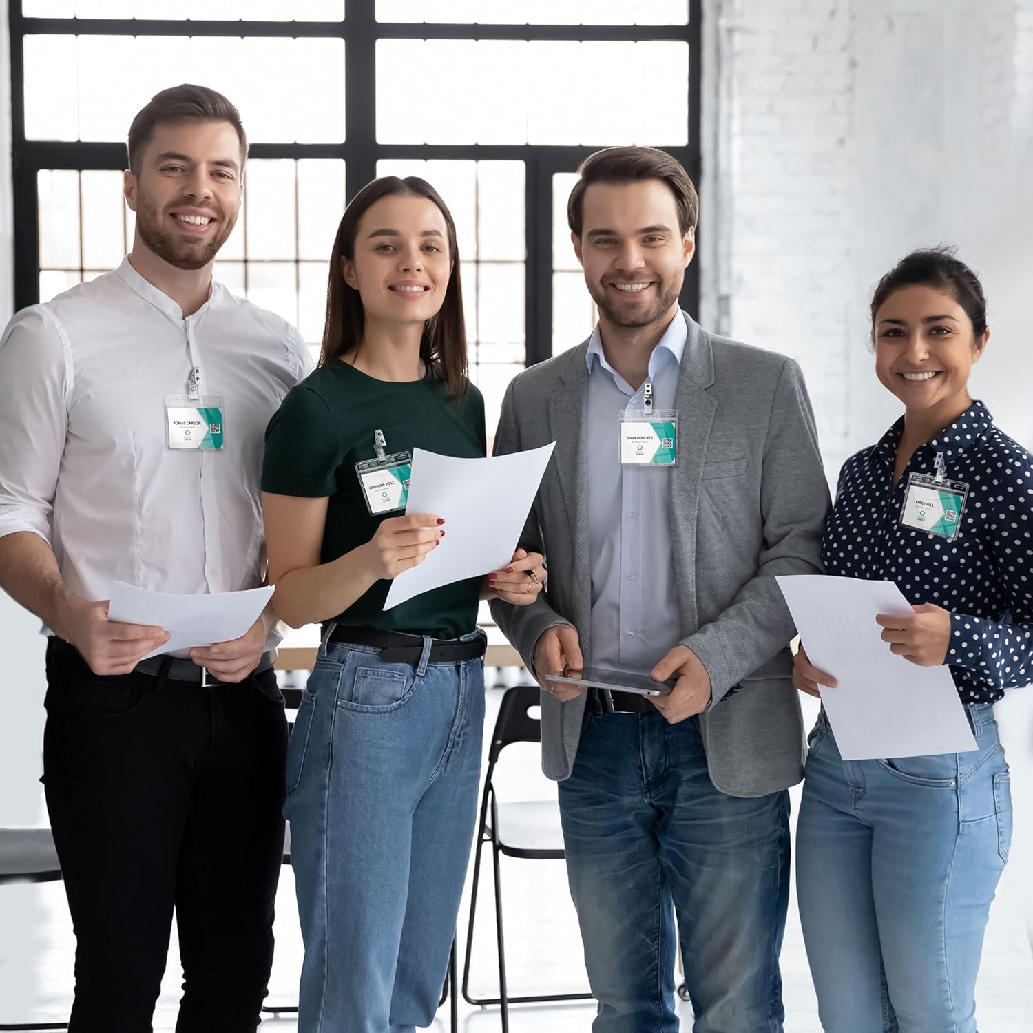 - INCLUDES - 10 Transparent ID badge holders (outside measures 4.5 x 4.2 inches, inside size is 4.3 x 3.3); Fits Mifflin 4 x 3 inch name card inserts