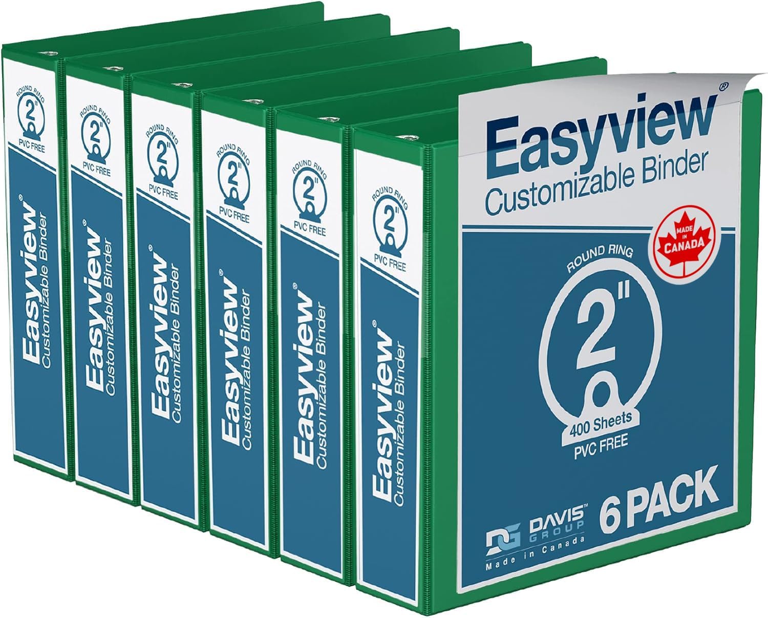 Easyview Premium 3-Ring Binders with Clear-View Covers and Round Rings, Binders for School or Office, 2 Inch, Pack of 6, Green