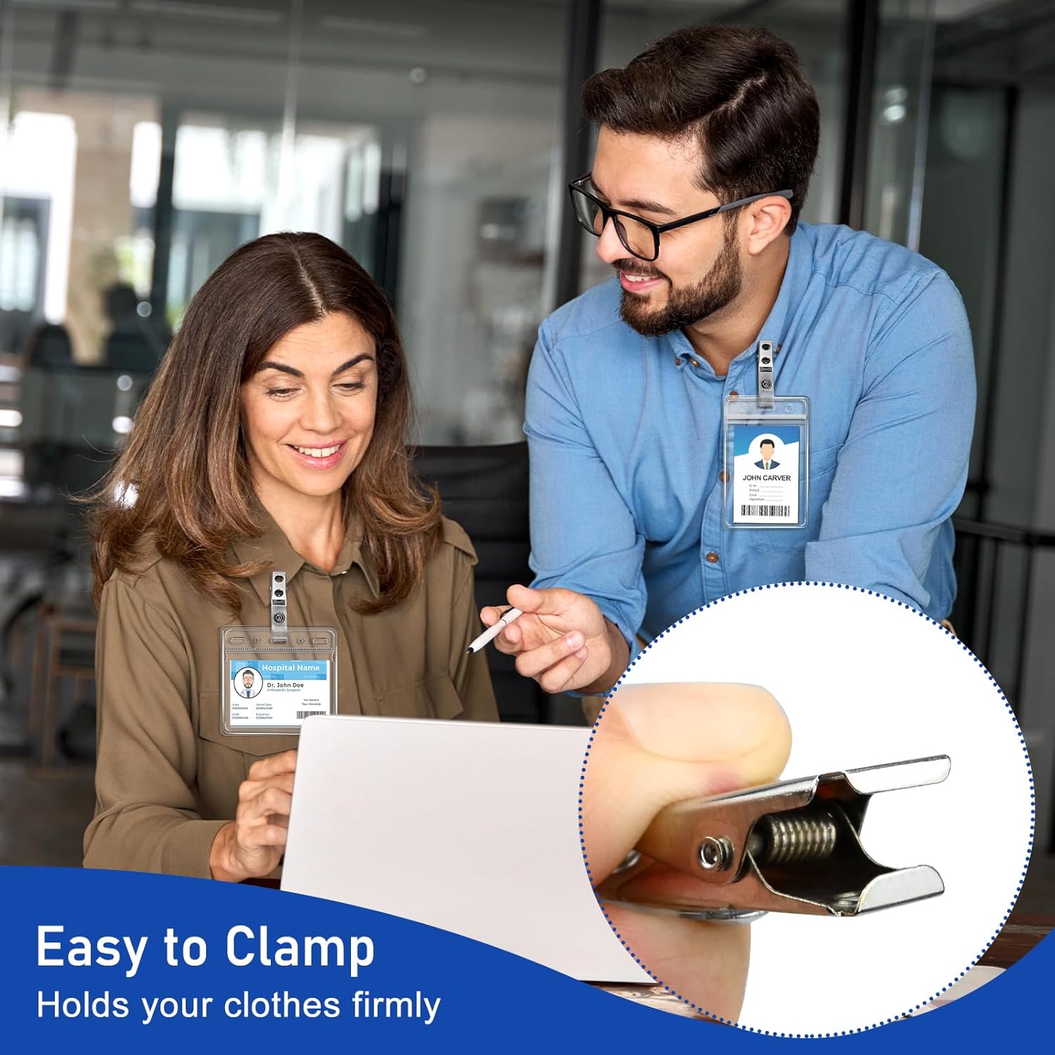 50Pcs Premium Metal Badge Clips with Clear PVC Straps for ID Cards, Badge Holders, Name Tags, Work Badges