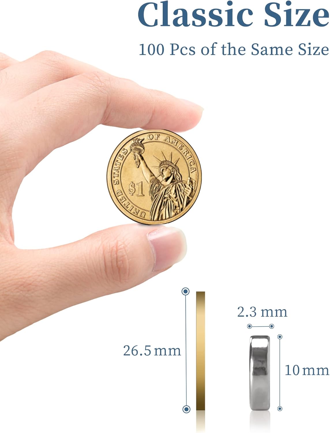 - Useful Design - Despite of its small size (Diameter: 10 mm, thickness: 2.3 mm), each magnet is able to hold at least 15pcs sticky notes. You don't have to worry it's not able to fixate the paper.