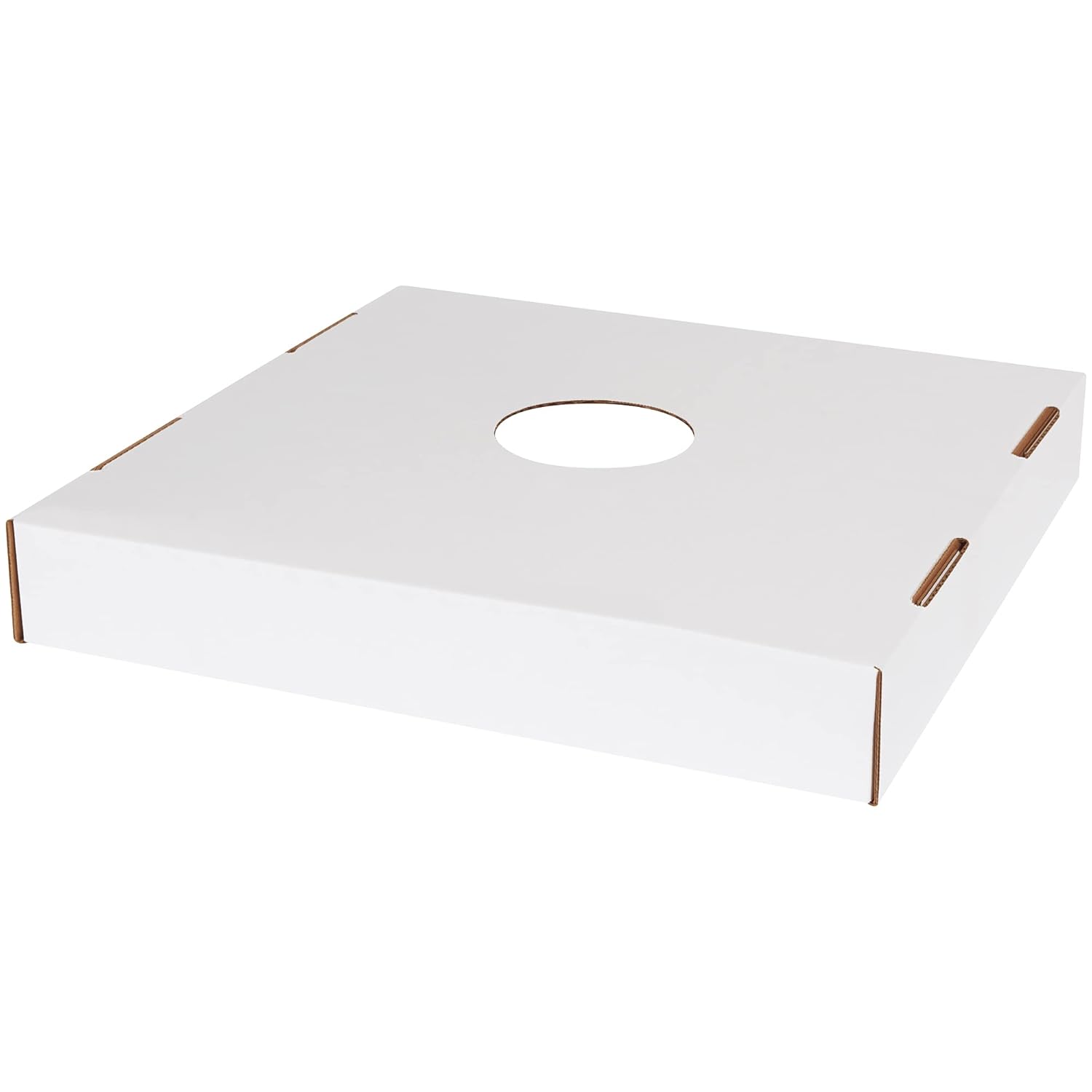 AVIDITI 40 or 50 Gallon Corrugated Cardboard Trash Can and Recycling Bin Lids with Hole (10-Pack) 18"L x 18"W x 3"H, White, Reusable and Disposable Garbage Lid for Parties and Outdoor Events