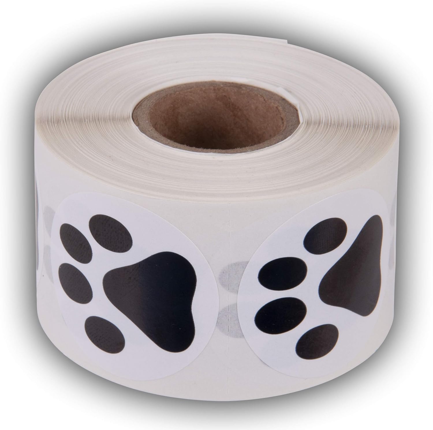 - 500 Total High Quality 1.5" Circle Black Paw Print Stickers - Made by Kenco in the USA