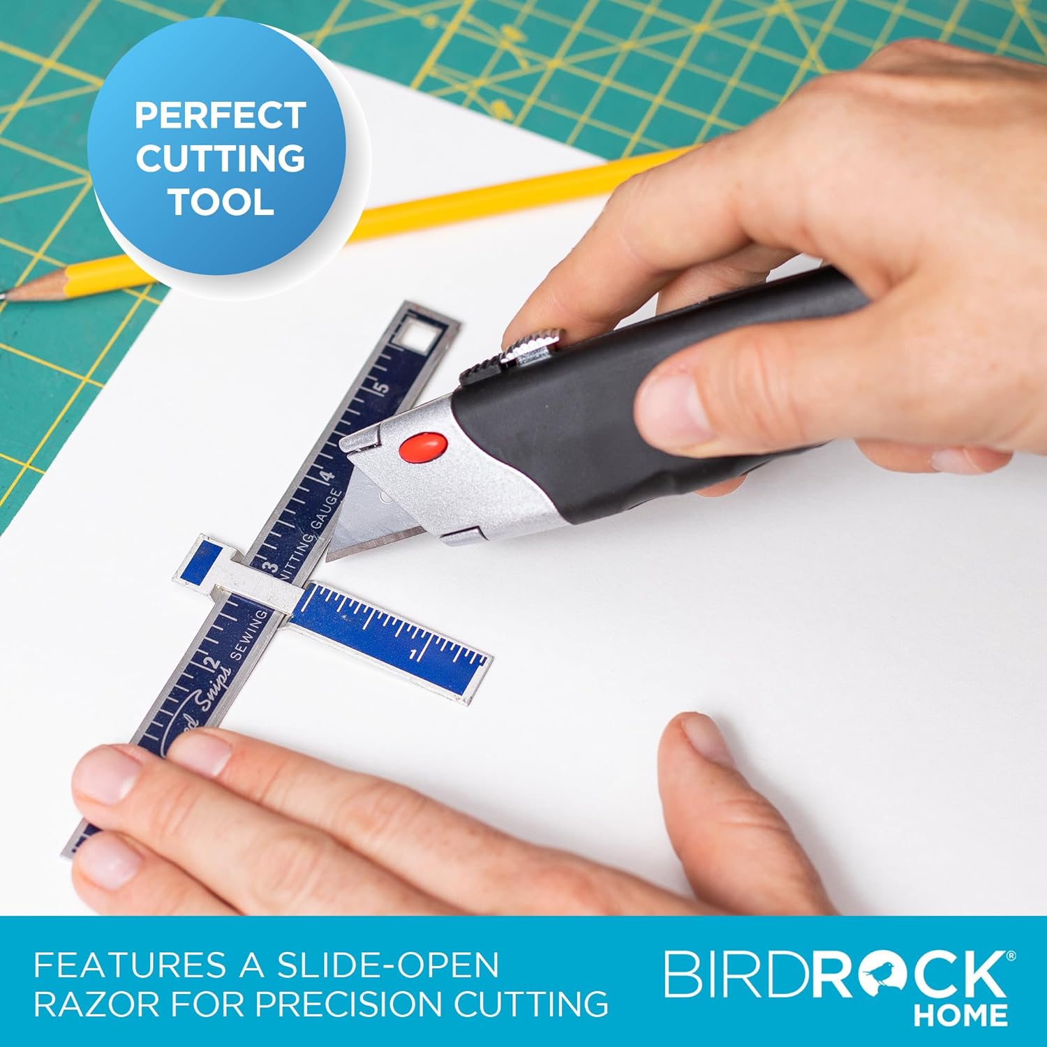 - HEAVY-DUTY: Metal, durable design with a textured grip allows for long-lasting, highly durable cuts and slices on boxes, plastic packaging, carpet, leather, wallpaper, rope, cardboard cartons, and straps. Perfect box cutter utensil for any job or project