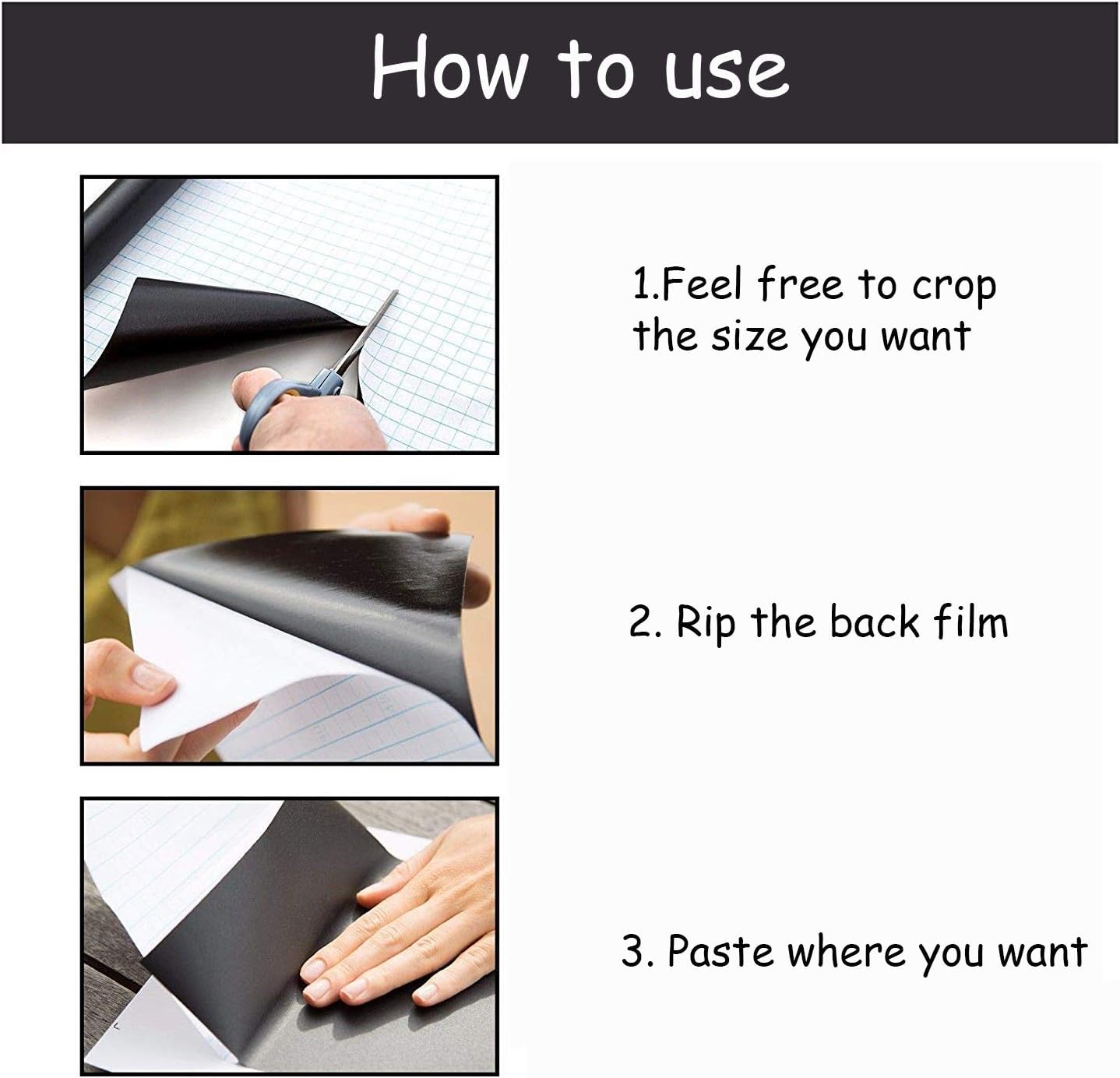 - SIZE AND SHAPE ARE UP TO YOU:Our dry erase board paper features grid lines on the back,you can cut this to any size,and peel off the backing to paste on the surface of your choice,and sticks very well.Come on,add a chalkboard strip to your kids play area.