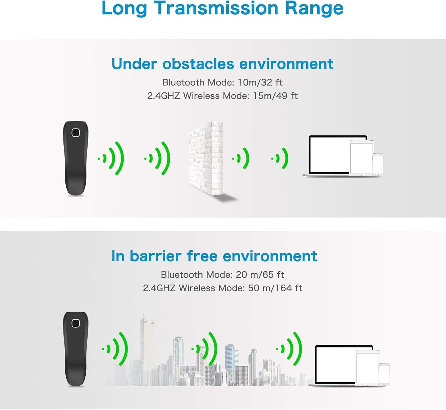 - The Pocket bar code scanner comes with 3-in-1 Connection Design:Compatible with Bluetooth Function; 2.4G Wireless connection receiver; Wired connection. Easily connected with your laptop, PC, mobile phone, tablet, iphone, ipad, POS. Work with Windows XP/7/8/10, Mac OS, Windows Mobile, Android OS, iOS