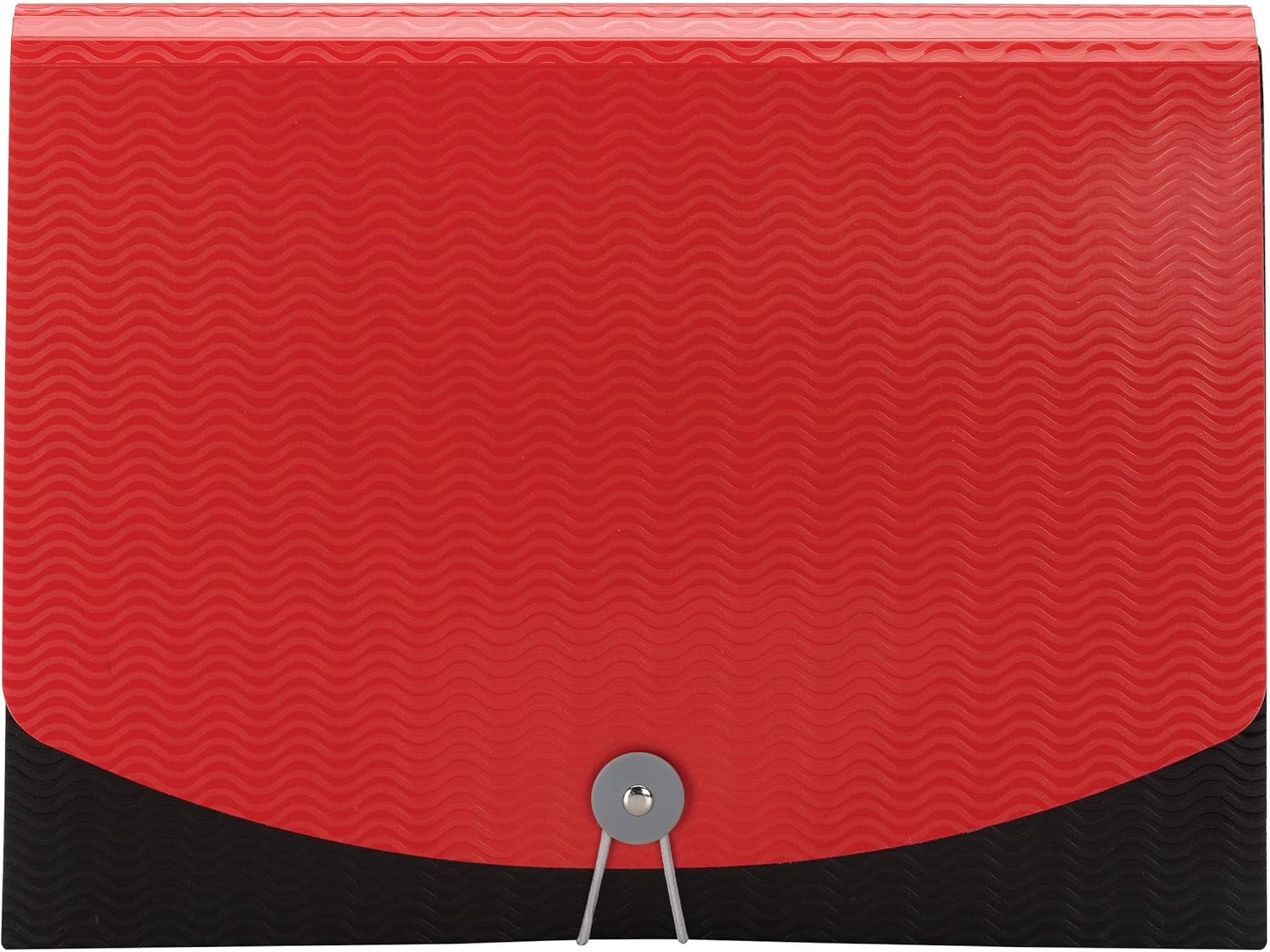 - Keep projects and tasks organized with our Poly Expanding File, featuring 6 clear dividers inside a black case and a unique embossed wave pattern on the solid red flap cover