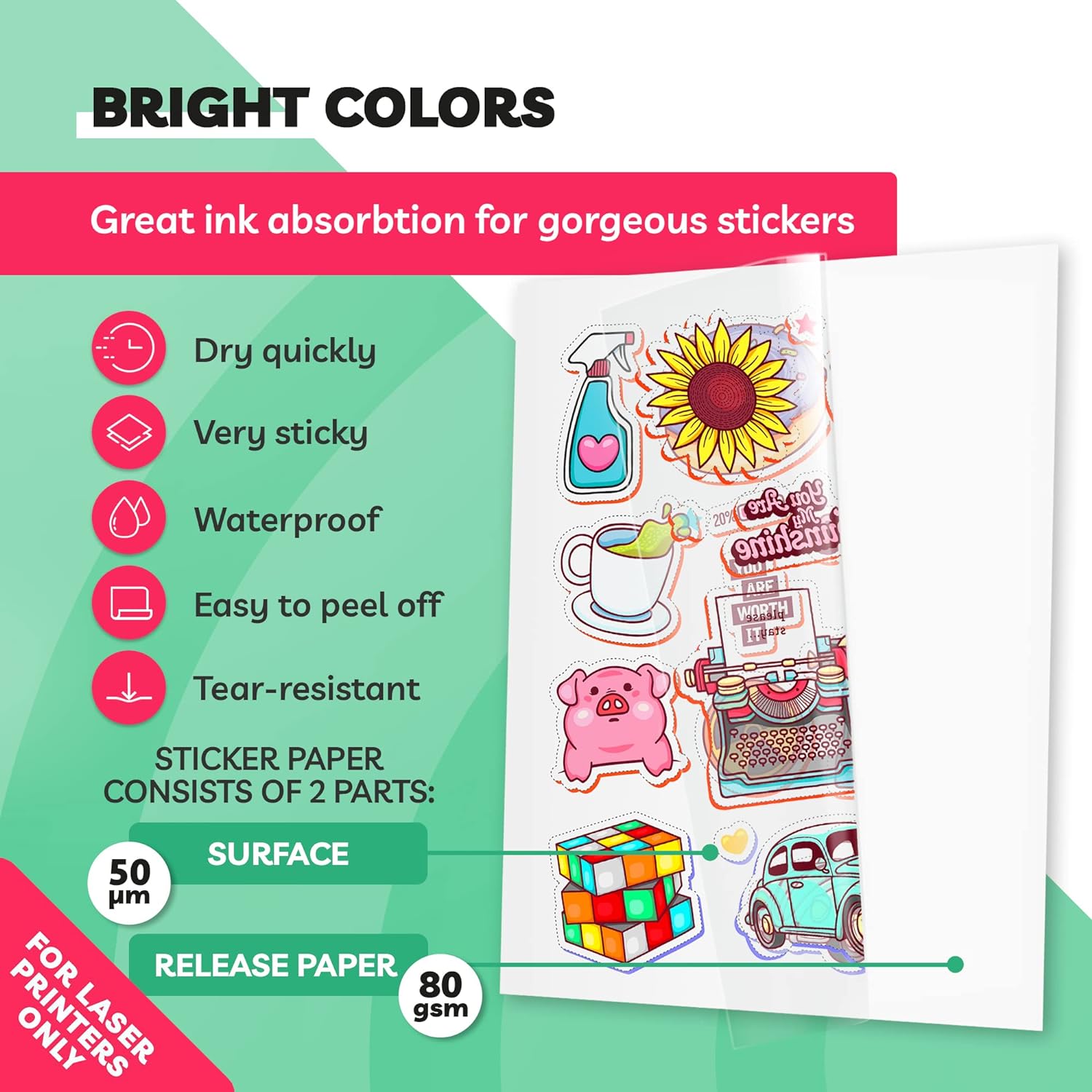 - Easy DIY Stickers: Make your own stickers at home with our clear sticker paper! Compatible with any laser printer, these 8.5" x 11" matte sheets are the perfect choice for your project