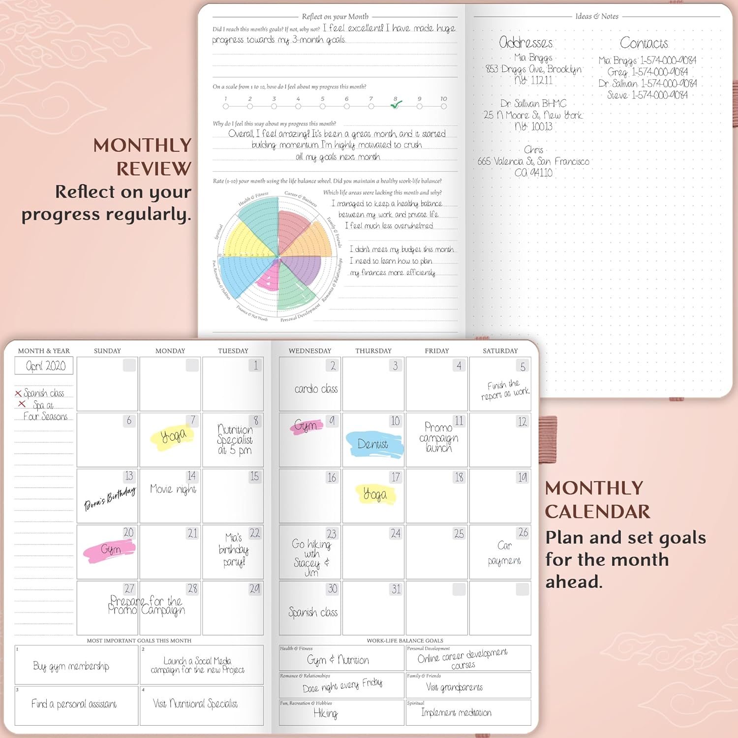 - IMPROVE WORK-LIFE BALANCE & REFLECT REGULARLY – This life planner prompts you to plan monthly activities in 6 life areas and reflect on your progress regularly to see where your life might be lacking.