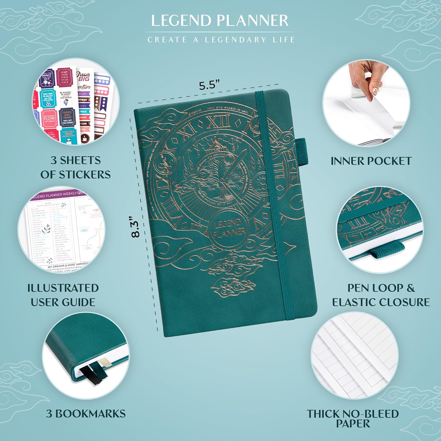 Legend Planner – Weekly & Monthly Life Planner to Hit Your Goals & Live Happier. Organizer Notebook & Productivity Journal. A5 (Dark Teal)