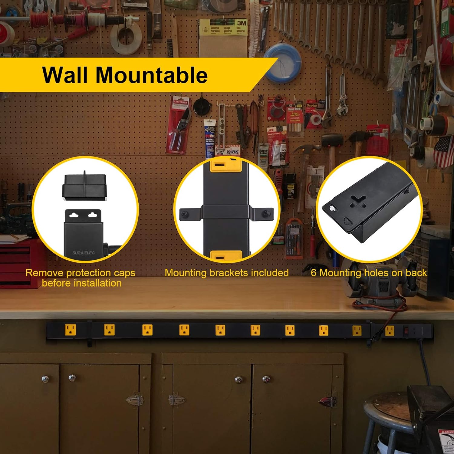 - Streamline Your Spaces: 41.54" power strip with 10 outlets spaced 2.25" apart for bulky plugs; 10 grounded outlets provide ample power for your workshop, office, and more, keeping cords organized and reducing clutter