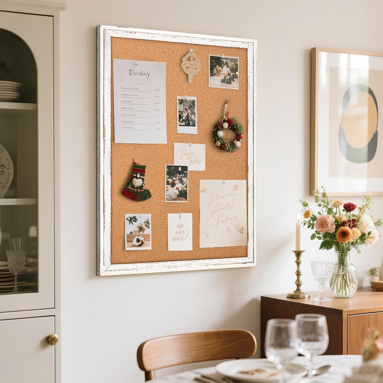 - 【Well-made Wooden Frame】Our white cork board features a precision-crafted frame, which is sturdy and durable. And the rustic white frame adds a touch of elegance to your space. The wooden frame has smooth edges to protect your hands from scratches