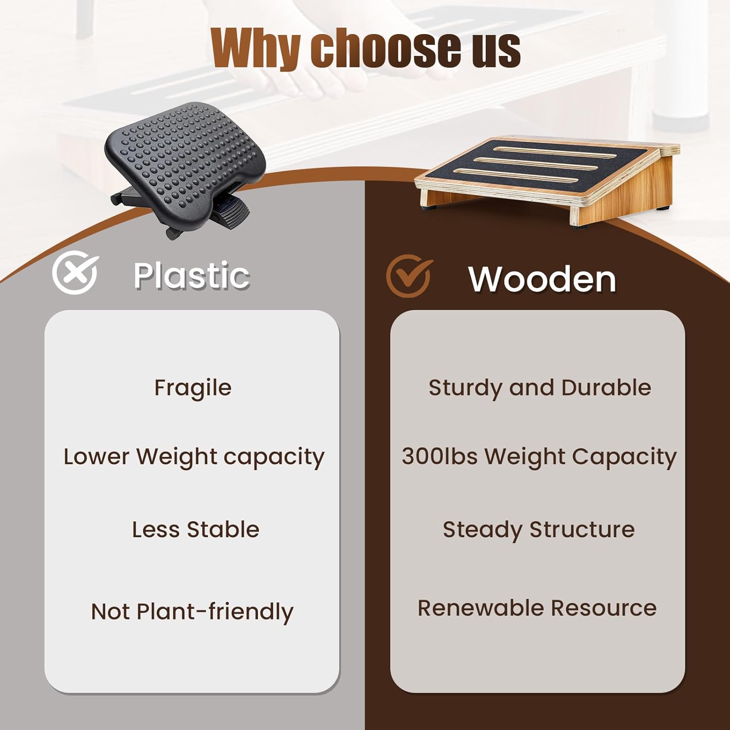 - Ergonomic Foot Rest for Improved Posture and Circulation: This wooden footrest is designed to reduce office fatigue and enhance sitting posture. By keeping your legs elevated, it helps prevent leg swelling, back pain, and poor posture, making it ideal for office desk use, home, and even gaming setups.