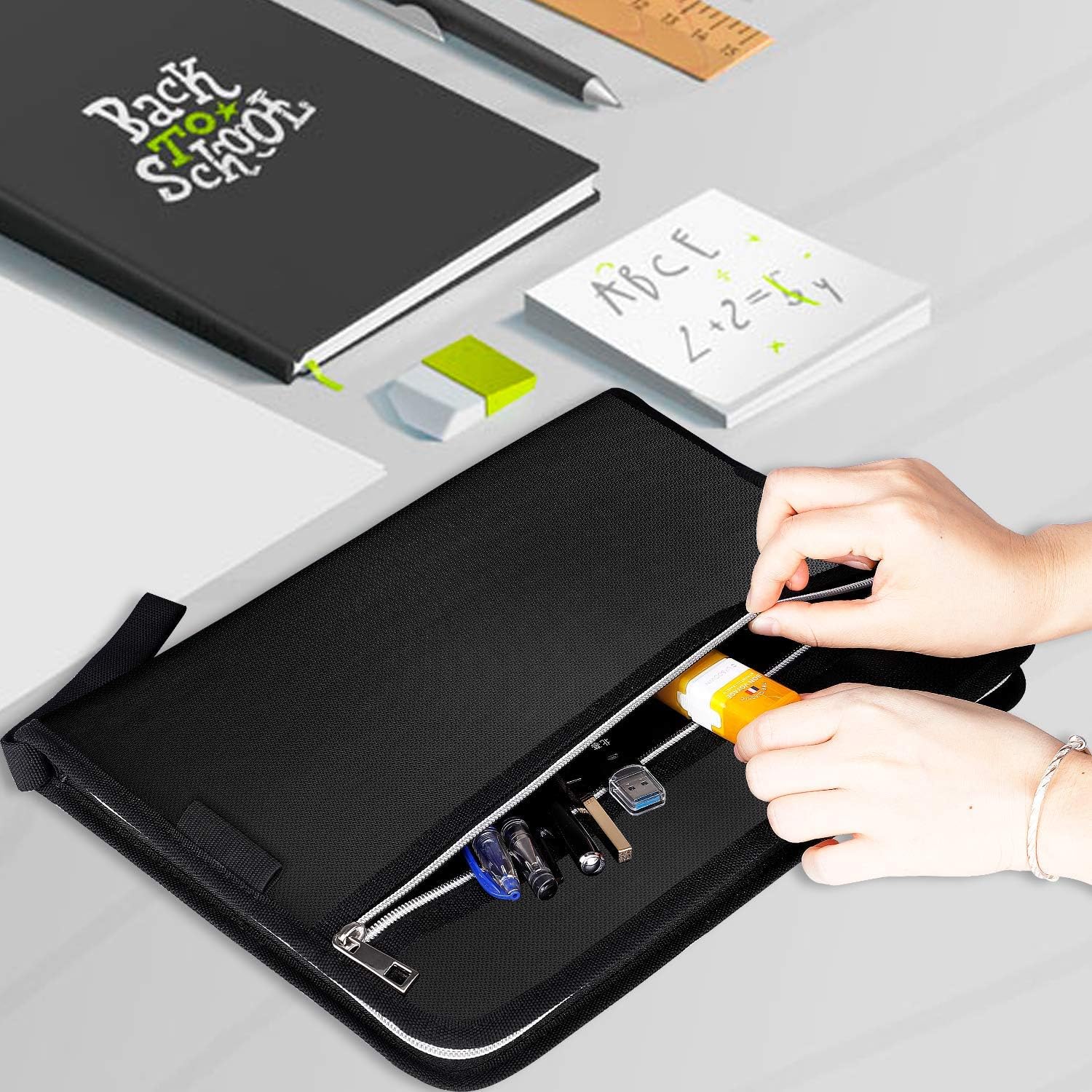 - [CONVENIENT DETAILS]: Attach an external pocket, suitable for mobile phones, passports, ID cards, bank cards, pens, cash, coins, etc. document folder has unique double zipper design and portable hand strap,this design is designed to make the file better preserved and easy to carry ,portable file folder has Classified labels can help you keep the document organized.