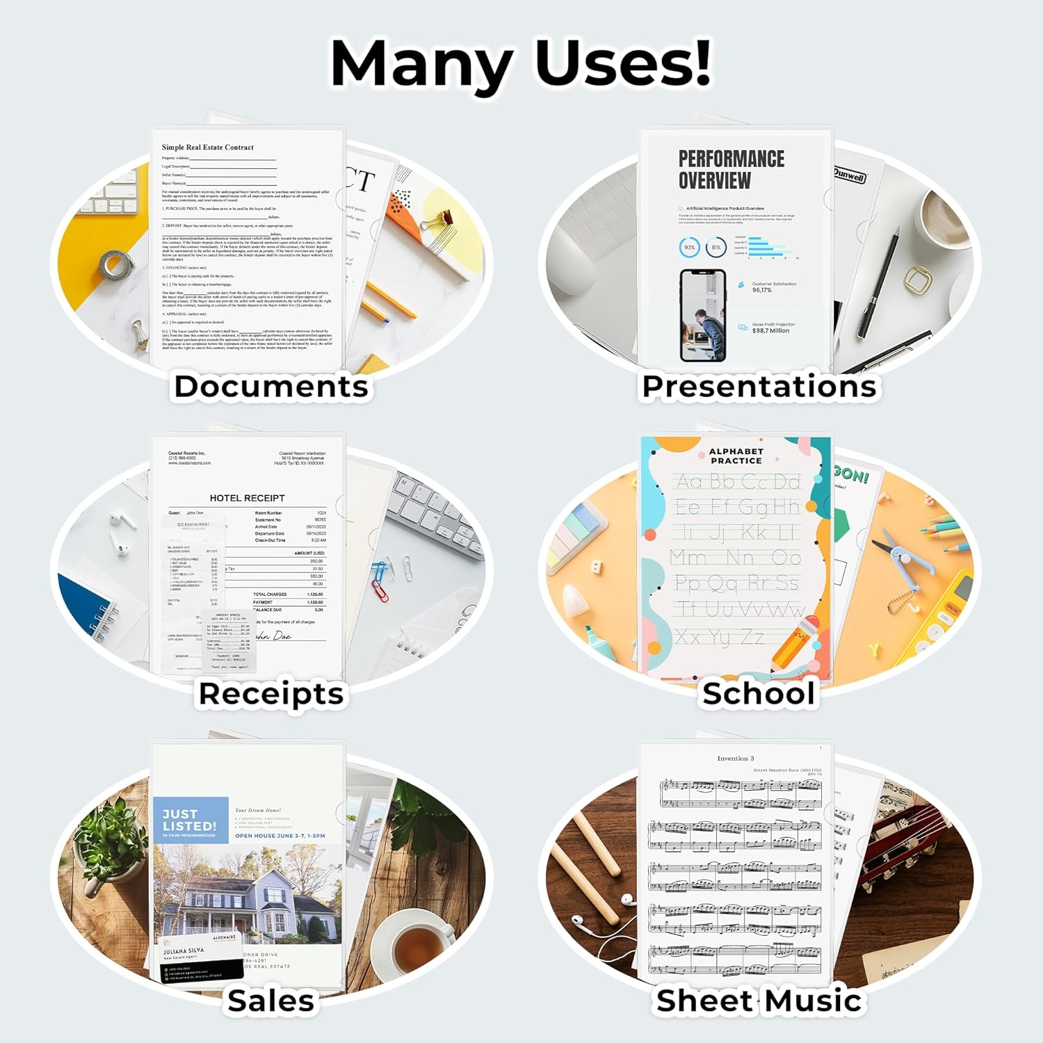 - PROFESSIONAL DOCUMENT ORGANIZATION: Perfect clear folder sleeves for business presentations, client materials, home filing systems. Crystal-clear transparency for instant identification.