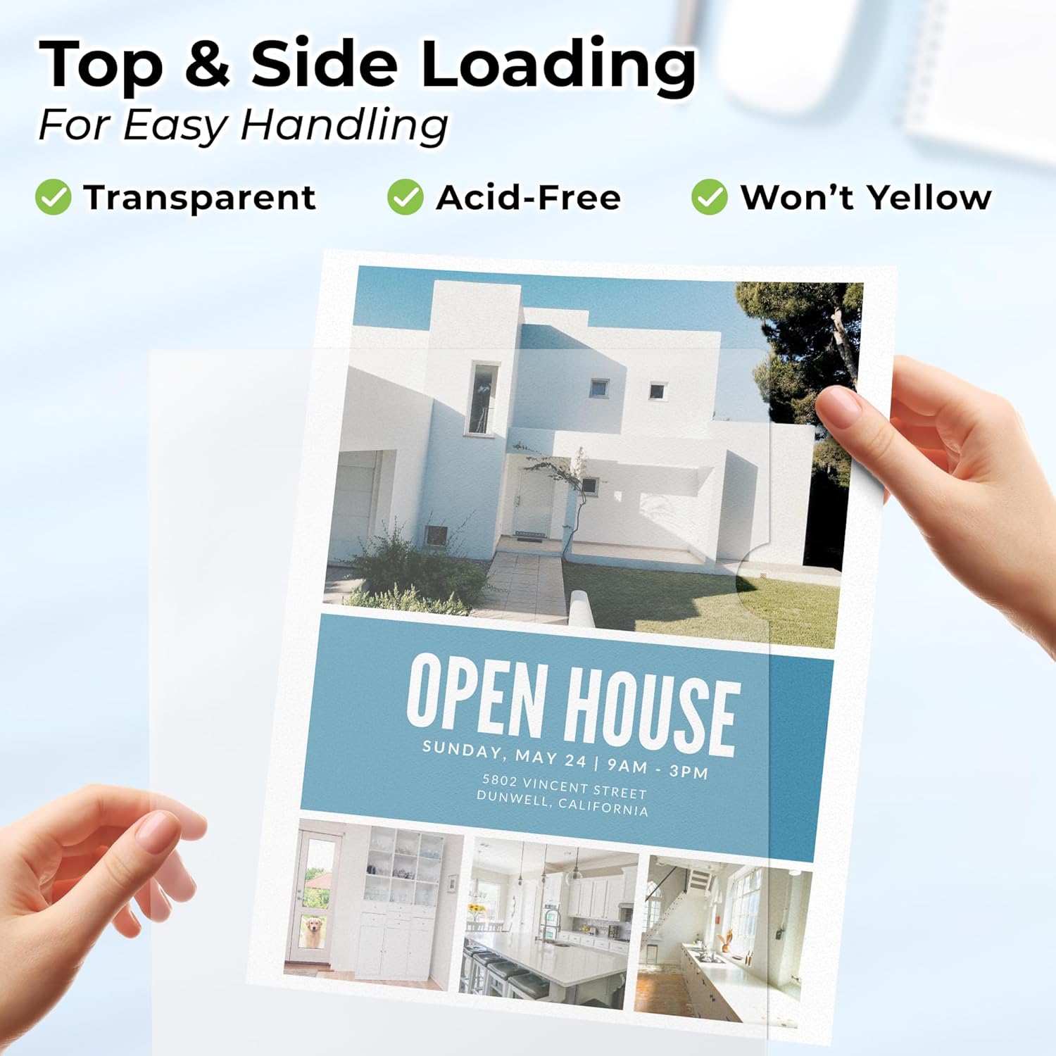- Includes: 12 clear plastic document sleeves. Must-have school supplies, office supplies. Also known as clear project sleeves, transparent file folders, see-through document folders project pockets.