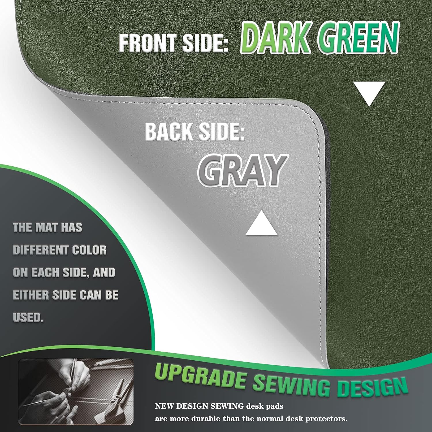 - DOUBLE-SIDED USE: We designed the desk pad with the same material but with different colors on each side, and you can use both sides. Come with a strap to roll up the pad and you can easily take it to anywhere. And also easy to store.