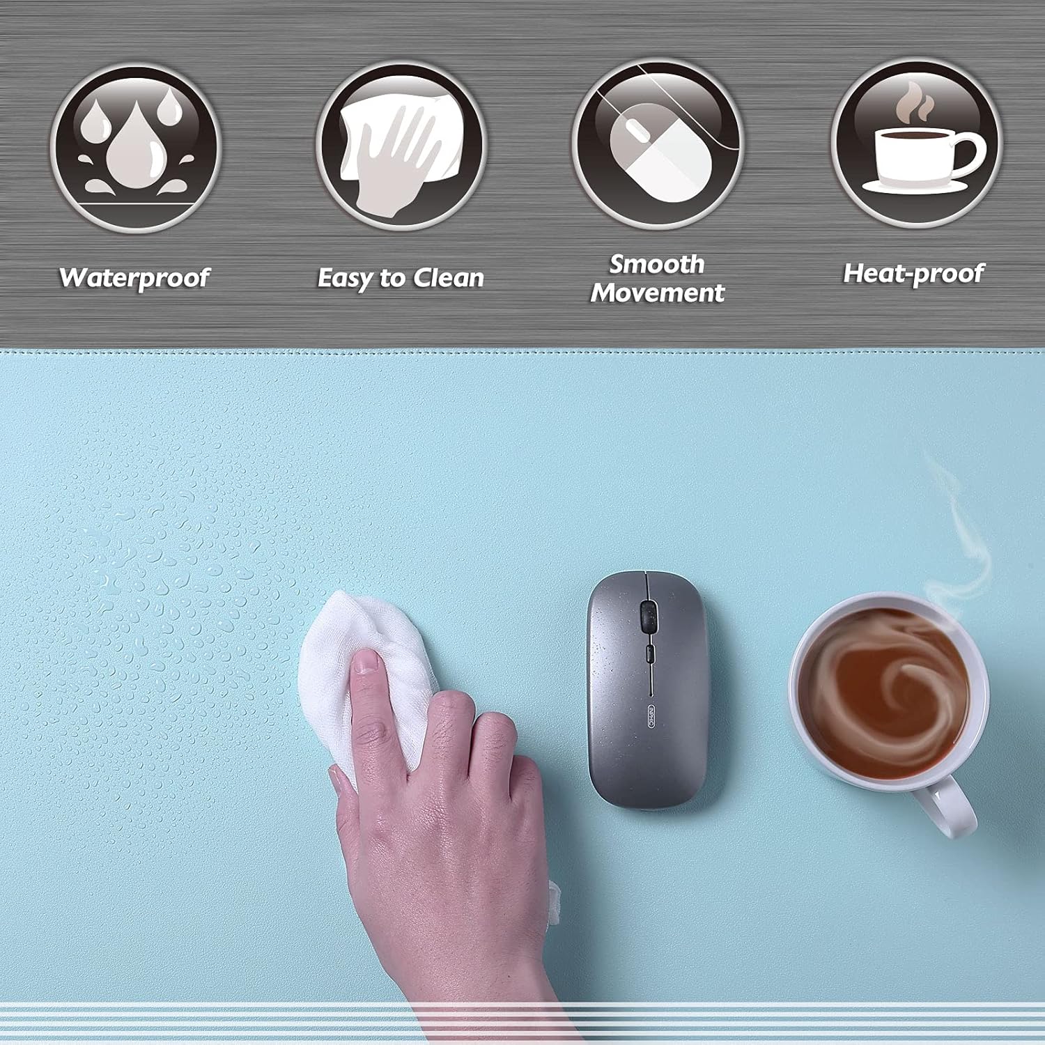 K KNODEL Desk Mat, Blotter, Dual-Sided Office Desk Pad, Waterproof Desk Mat for Desktop, Desk Blotters, PVC Leather Pad Protector (Light Blue, 23.6" x 13.8")