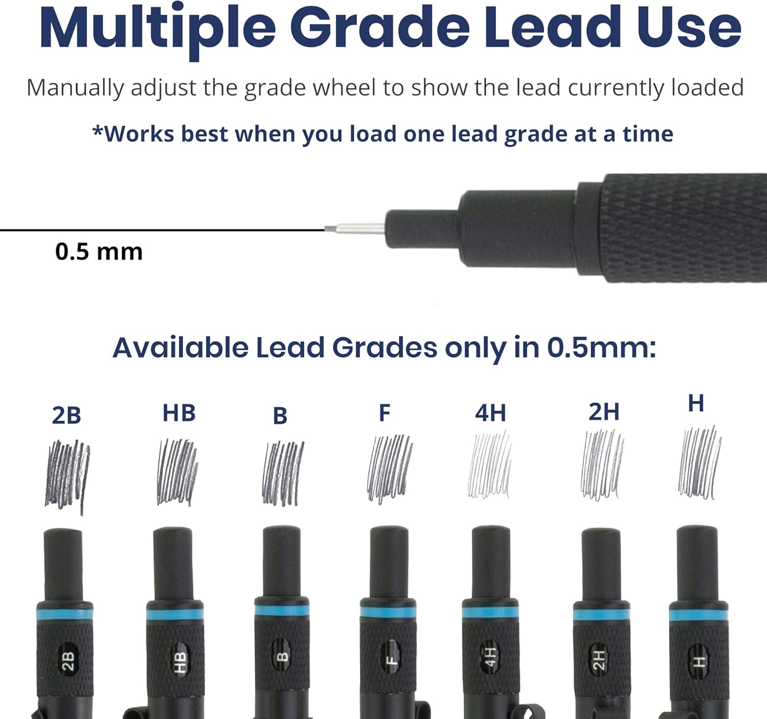- THE PERFECT DRAFTING PENCIL - Create smooth, beautiful drawings with mechanical lead pencils designed for artists. The non-slip metal grip allows for precise lines. Each Chromograph comes with .5 mm lead included.