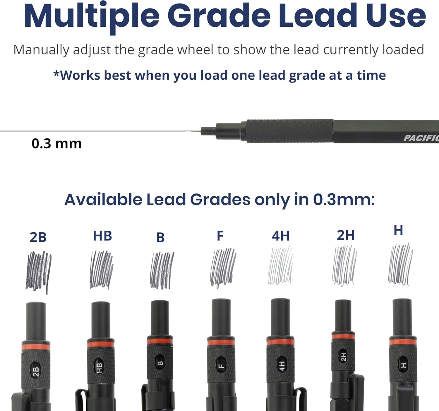 - THE PERFECT GIFT - The first step to many works of art are mechanical pencil sketches. As a result, artists often have one pencil for every lead grade needed. Streamline your loved one's toolkit with Pacific Arc's all in one adjustable pencil and help bring their art to life.