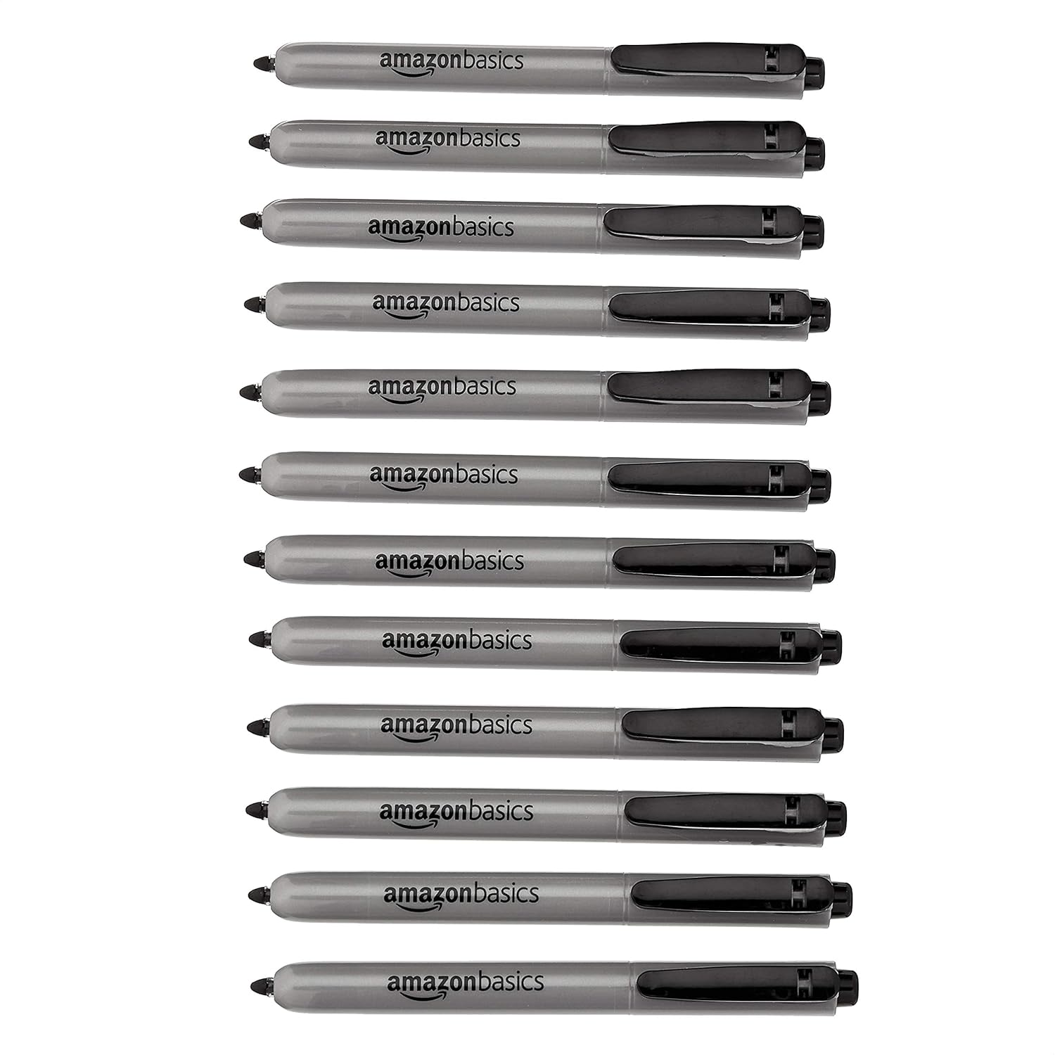 Amazon Basics Retractable Permanent Markers, Versatile Art Supplies for Home, School, and Office Use, 12 Count, Black