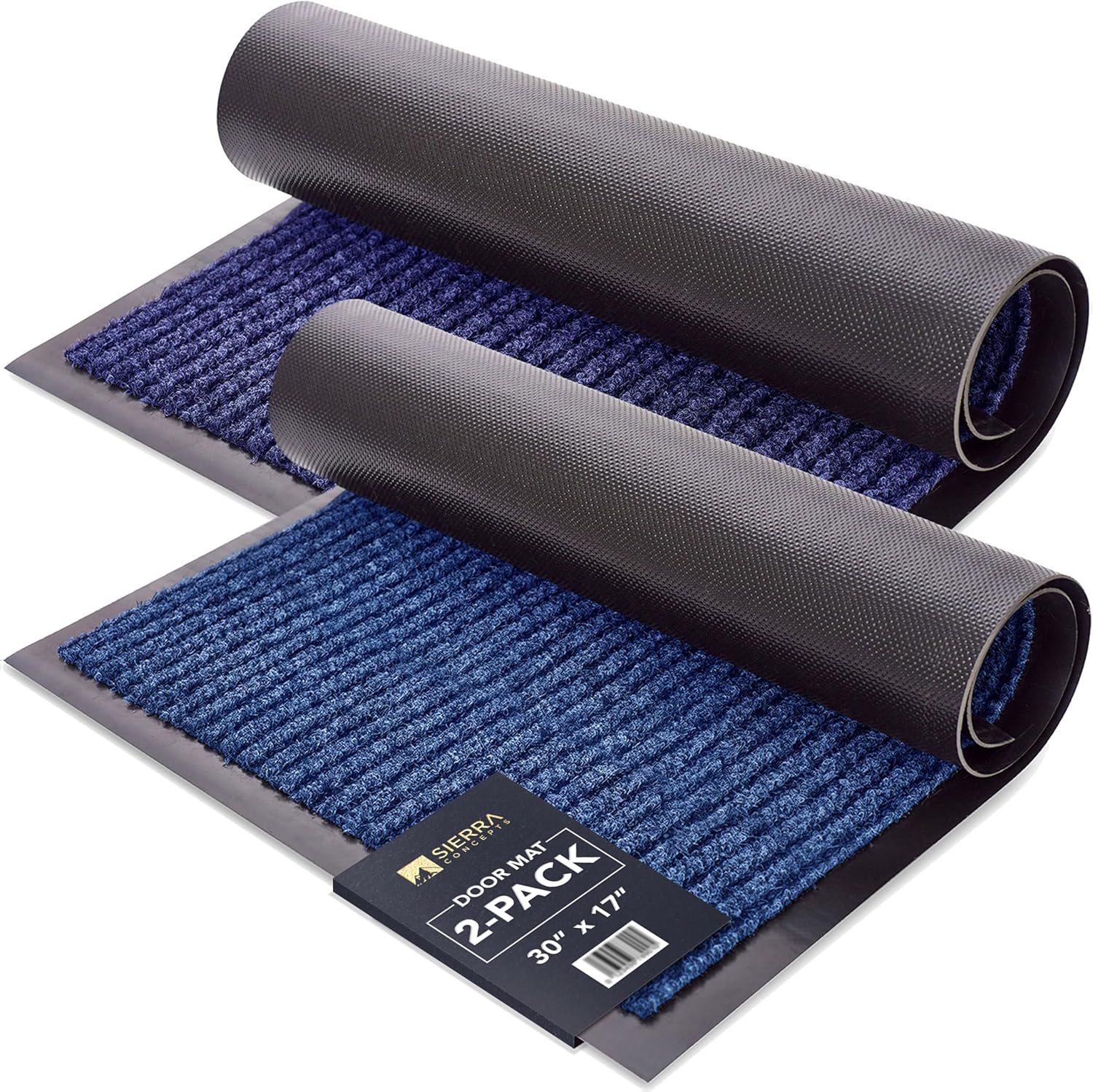 Sierra Concepts Front Door Mat Welcome Floor Mats - Entryway Indoor Outdoor Entrance Dog Doormat, Patio, Porch, Muddy Shoe, Inside Outside Low Profile, 30x17 inches, 2-Pack Blue