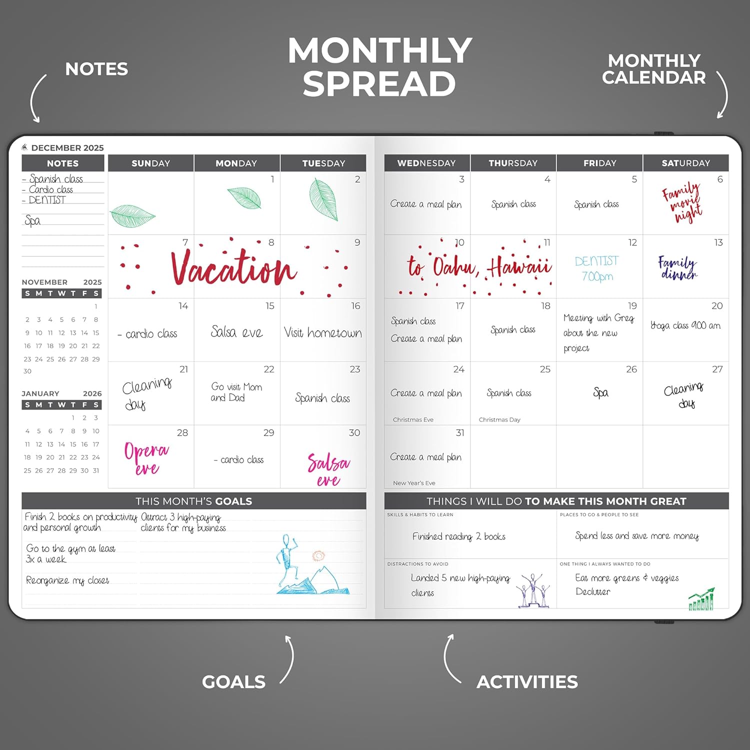 - CREATE A VISION FOR YOUR FUTURE, SET GOALS & START PLANNING – This goal-setting planner 2025 will help you create a vision for your life, define your global goals, and incorporate them into your agenda.