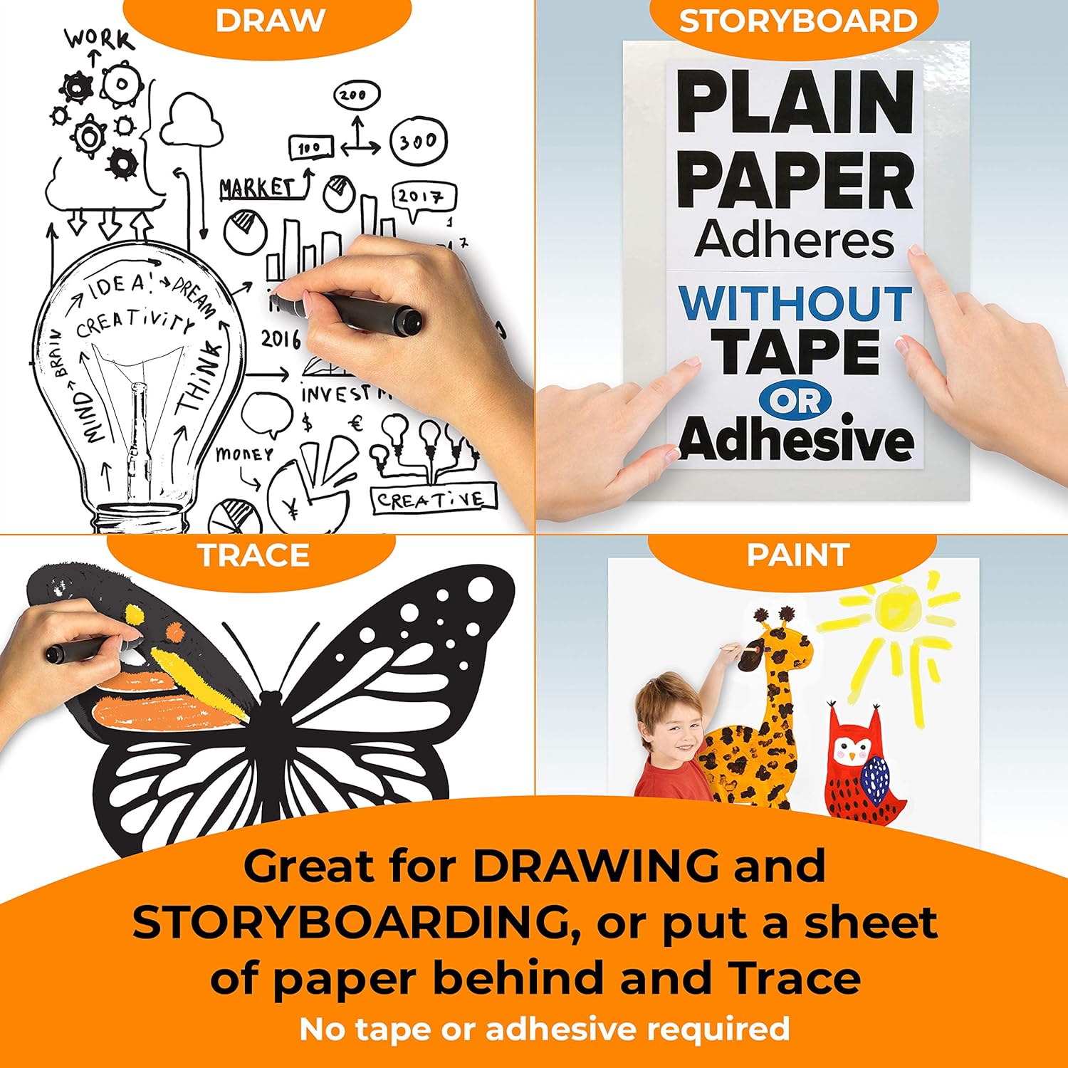 - 𝐖𝐨𝐫𝐤𝐬 𝐰𝐢𝐭𝐡 𝐃𝐫𝐲 𝐄𝐫𝐚𝐬𝐞 𝐌𝐚𝐫𝐤𝐞𝐫𝐬 & 𝐌𝐨𝐫𝐞: Compatible with dry erase markers fine tip, chalk markers, or whiteboard markers for vibrant, reusable designs. Use it for storyboarding, tracing images, or as a poster board alternative—no tape or adhesive required. Perfect for homeschooling, art projects, and office decor.