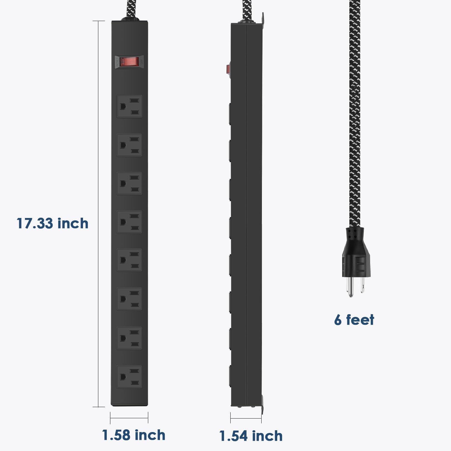- 【8 in 1 Power Strip】This mountable power strip features 8 outlets and 1 switch, providing you with multiple options to connect your devices. With a 6 feet 14AWG braided cord, it ensures durability and easy reach to power sources. Rated at 1200J, 1875W, 15A, 125V, 60Hz, and with SGS certification, it guarantees safe and reliable charging.