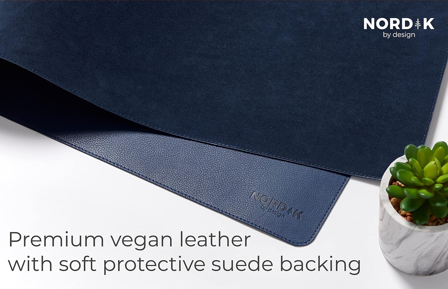 Nordik Leather Desk Mat Cable Organizer (Midnight Blue 35 x 17 inch) Premium Extended Mouse Mat for Home Office Accessories - Felt Vegan Large Leather Desk Pad Protector & Desk Blotter Pads Decor