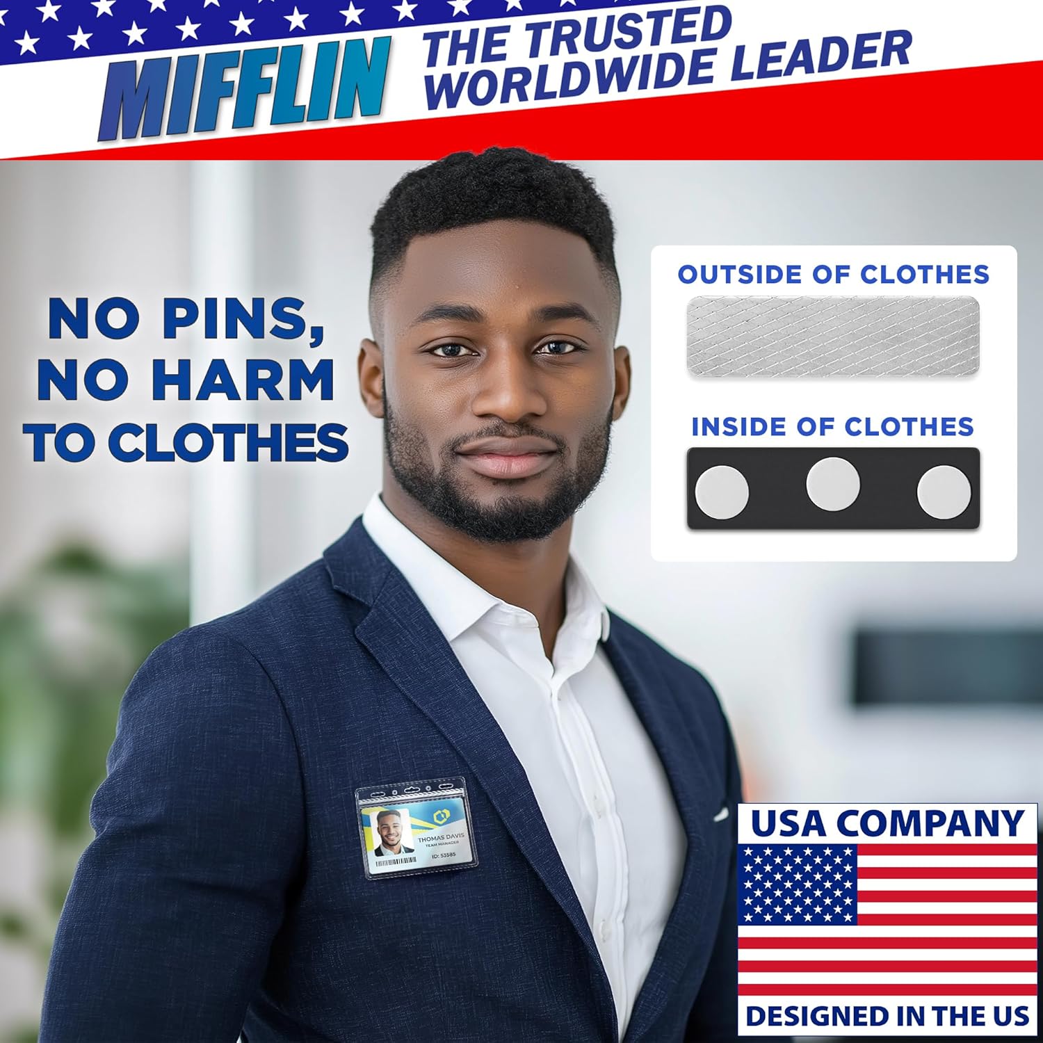 Mifflin-USA Name Tag Magnets (100 Magnets, 1.75 x 0.5 inches), Name Tag Magnet Backs w/ 3 Extra-Strong Neodymium for ID Badge Holders