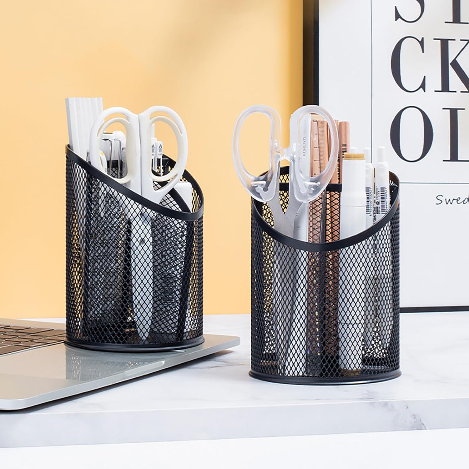 - Black mesh pencil holder is constructed in sturdy metal and coated in black epoxy, solid metal structure, anti-fall, anti-cracking for long time using.