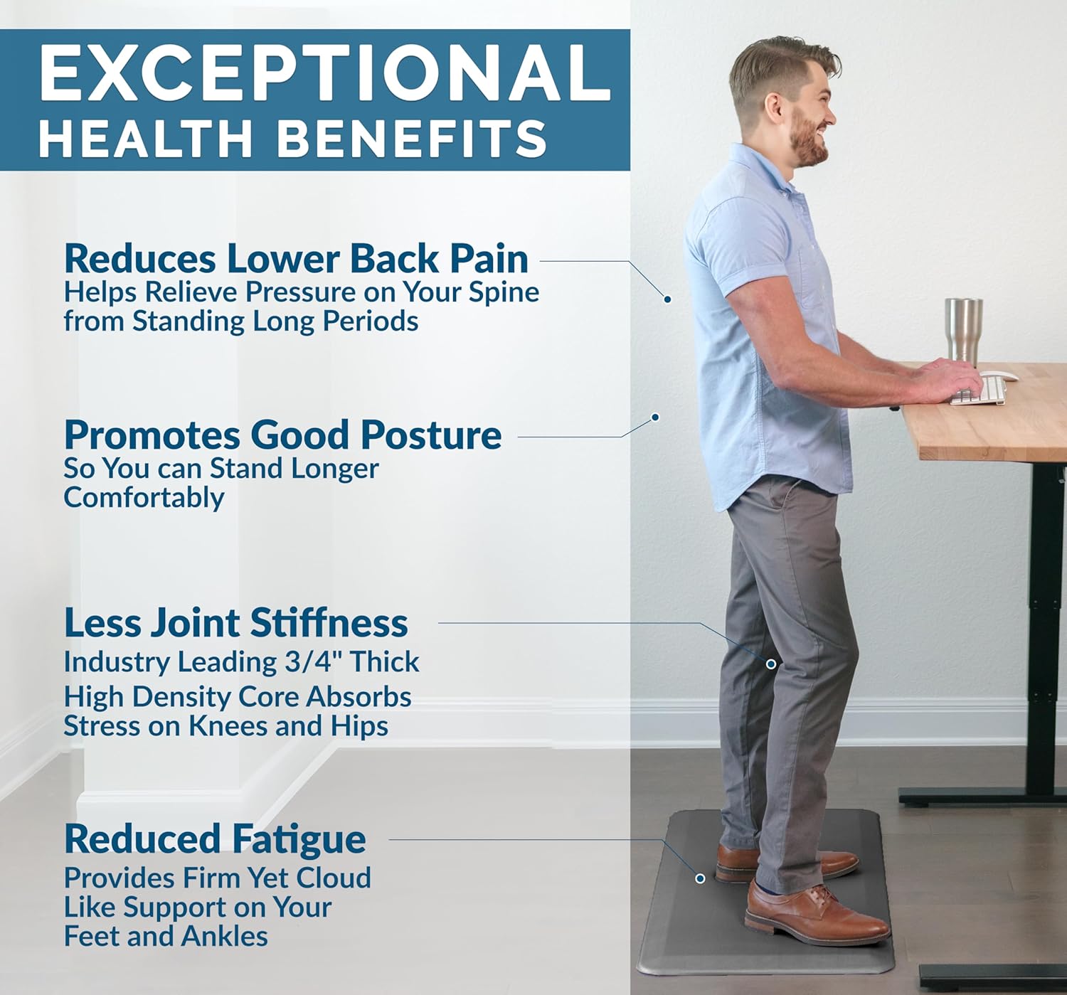 ComfiLife Anti Fatigue Floor Mat – 3/4 Inch Thick Kitchen Mats for Floor, Standing Desk Mat, Kitchen Rug – Comfort at Home, Office – Durable – Stain Resistant – Non-Slip Bottom (20" x 39", Charcoal)