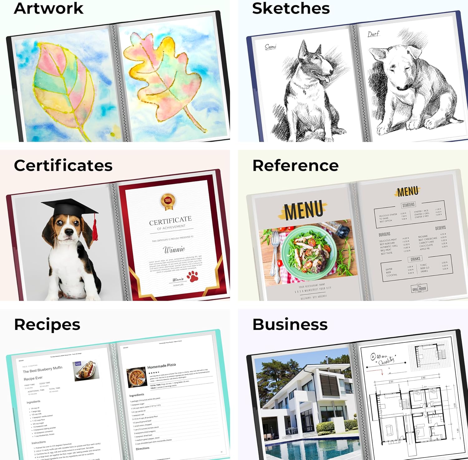 - CUSTOMIZABLE COVER AND SPINE: For easy identification, better organization and a great look. Versatile portfolio organizer is ideal for certificates, photos art portfolios and student projects.