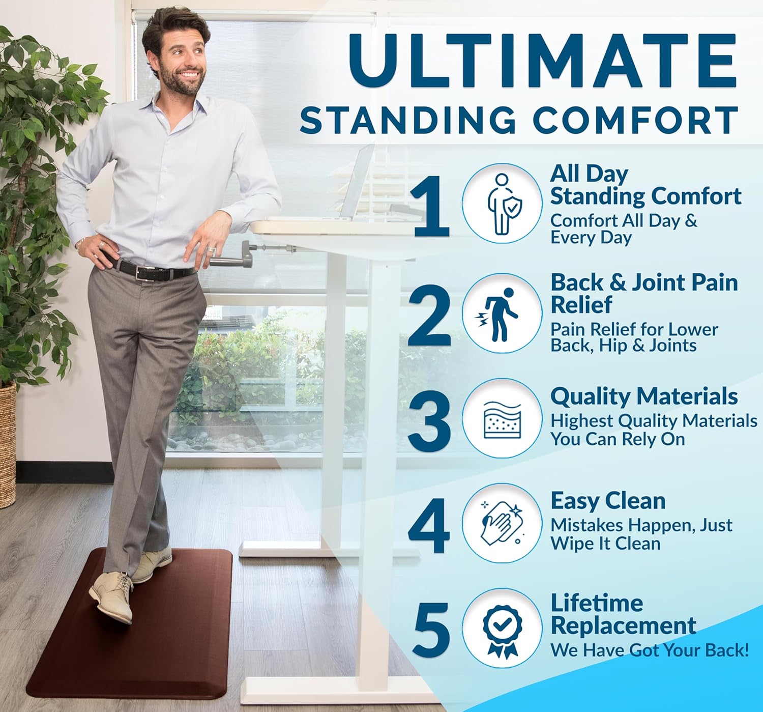ComfiLife Anti Fatigue Floor Mat – 3/4 Inch Thick Kitchen Mats for Floor, Standing Desk Mat, Kitchen Rug – Comfort at Home, Office – Durable – Stain Resistant – Non-Slip Bottom (24" x 70", Brown)