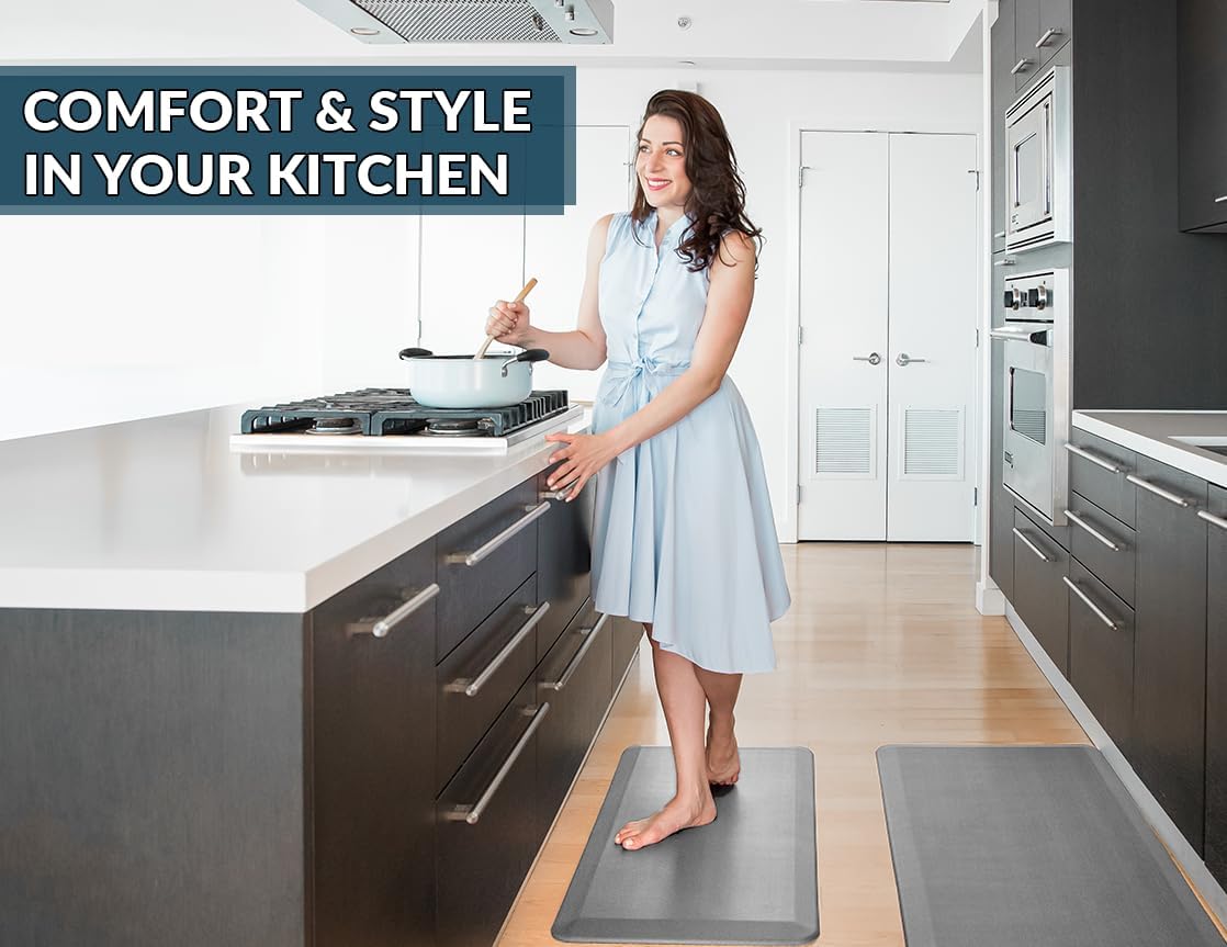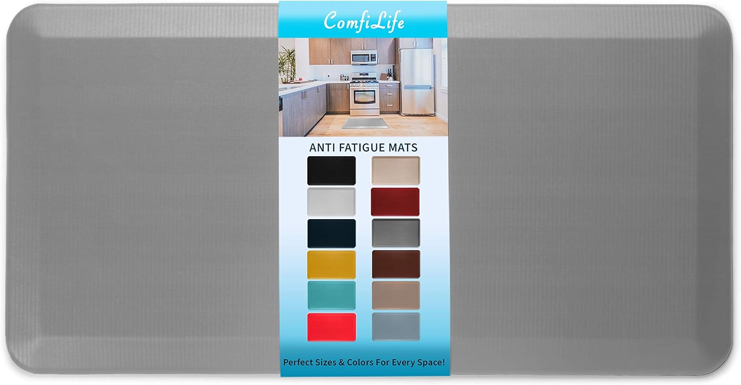 - Exceptional Comfort Anti Fatigue Mat: ComfiLife kitchen mats for floor enhance comfort while standing. It is professionally engineered and can be used as padded kitchen mat or for your standup desk that will not lose support over time. Ideal for use as a standing desk mat., kitchen mats cushioned anti fatigue, kitchen floor mat or anti-fatigue mats for kitchen floor.