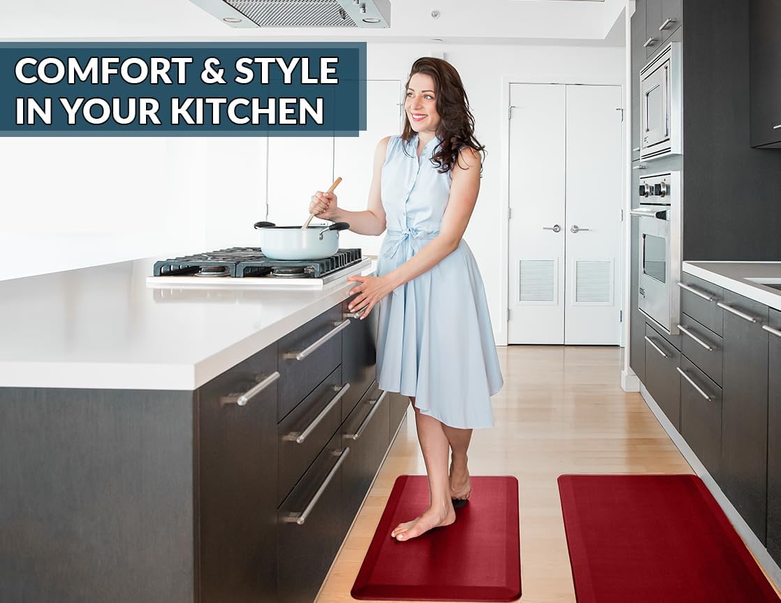 ComfiLife Anti Fatigue Floor Mat – 3/4 Inch Thick Kitchen Mats for Floor, Standing Desk Mat, Kitchen Rug – Comfort at Home, Office – Durable – Stain Resistant – Non-Slip Bottom (24" x 70", Red)