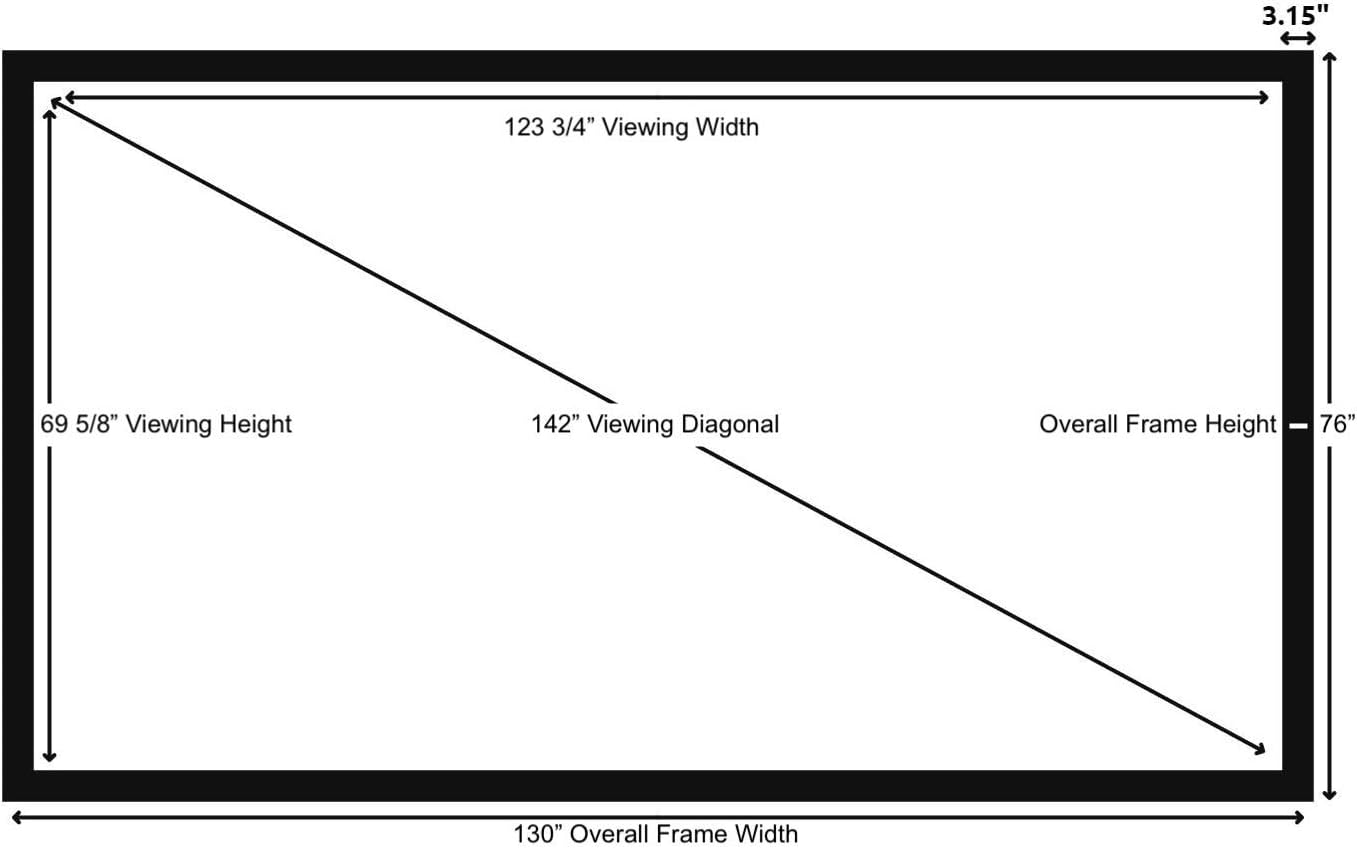 - Wall Mounted Fixed Frame Projection Screen (Overall Size 76" Tall x 130" Wide) (Viewing Area 142" Diagonal x 69.625" Tall x 123.75" Wide) No option for Legs or Stands with this product. Recommended for projectors with Native 16:9 Resolution