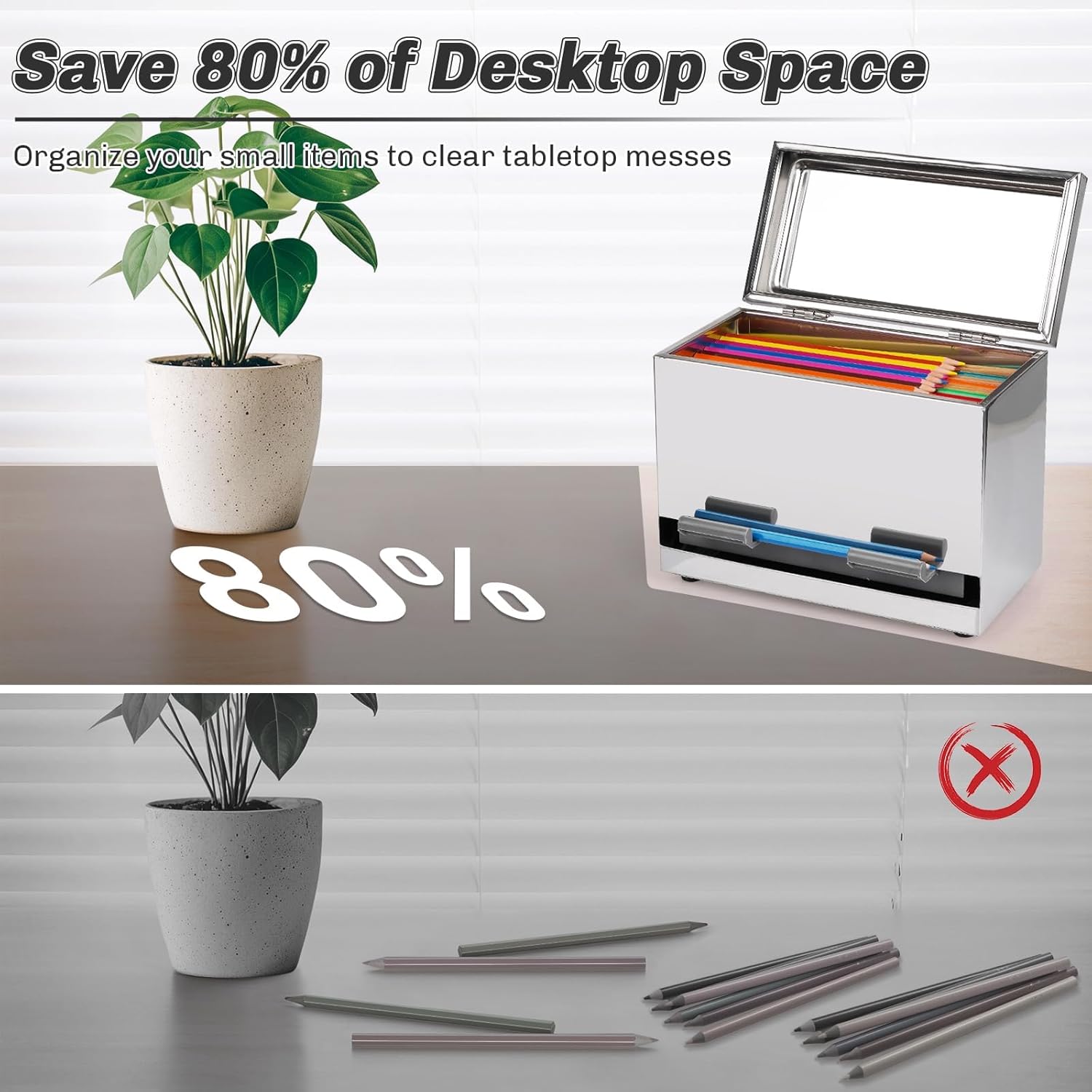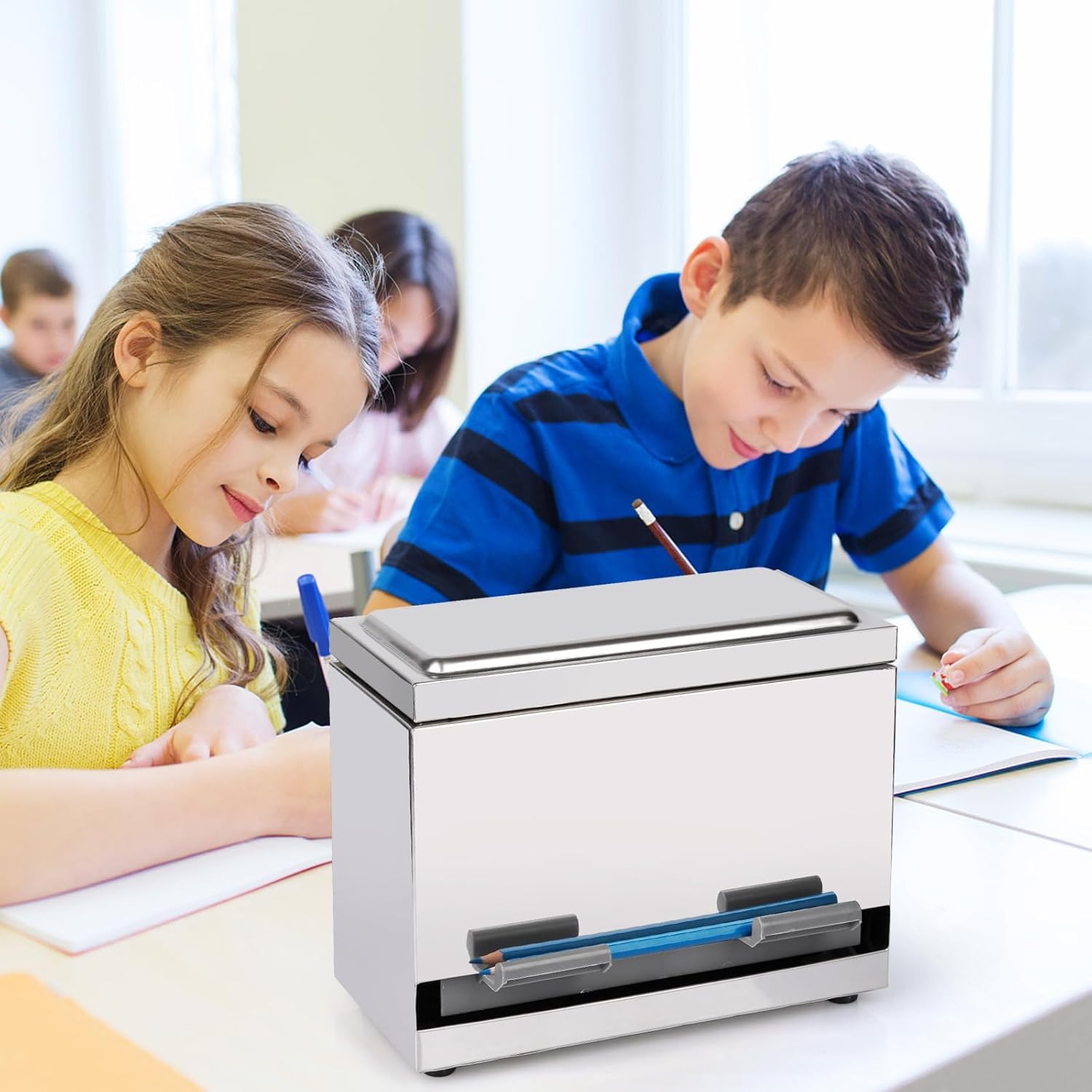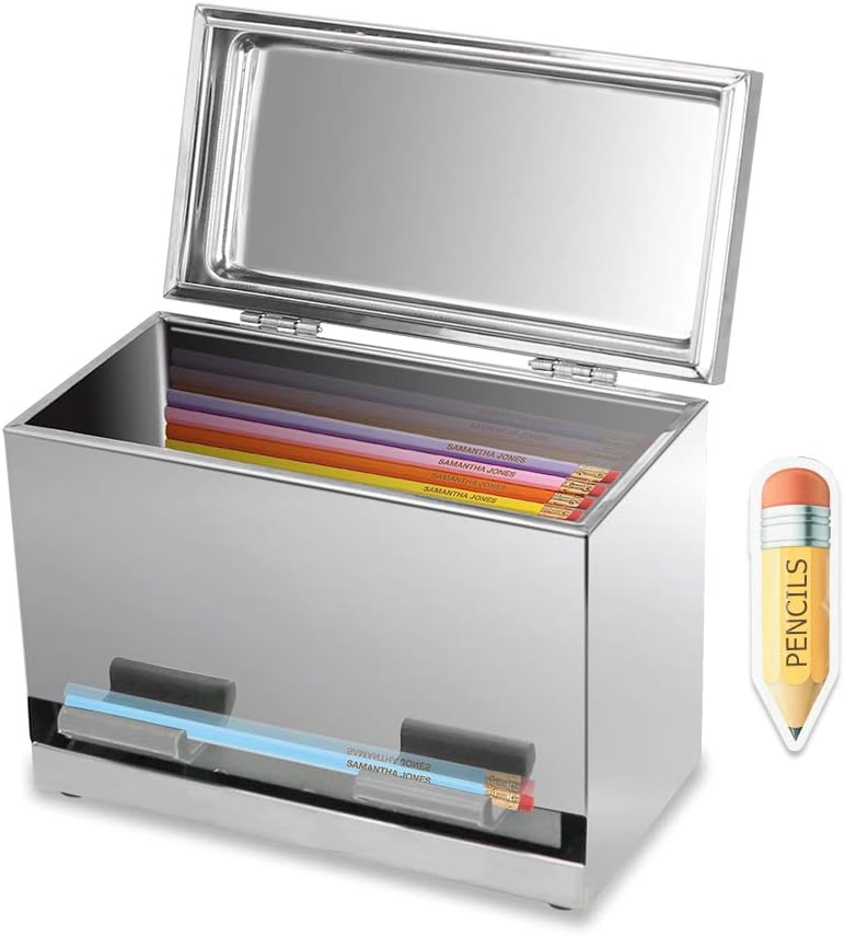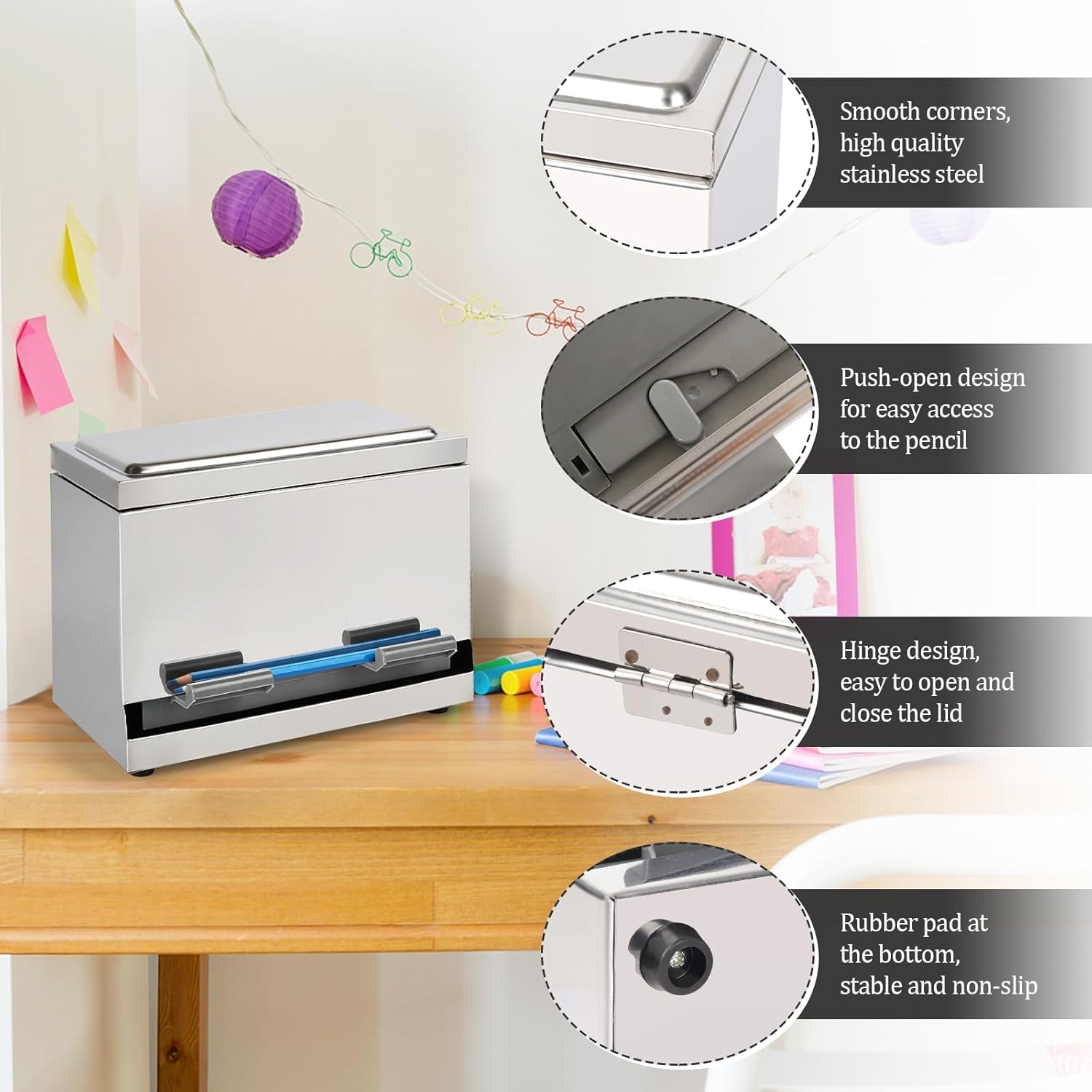 Stainless Steel Pencil Dispenser/Pen Holder for Classroom Home Restaurant for Bulk Pencils Storage/Unwrapped Drinking Straws Storage (Silver)