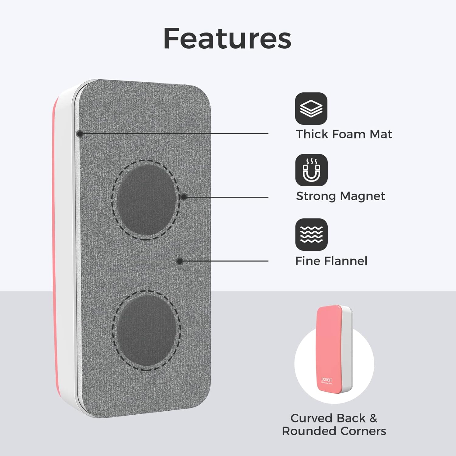 loukin Magnetic Dry Erase Eraser, Whiteboard Eraser, Glass Board Remover, 3.4 fl oz Whiteboard Cleaner Included, for Classroom, Home and Office Use (Pink)