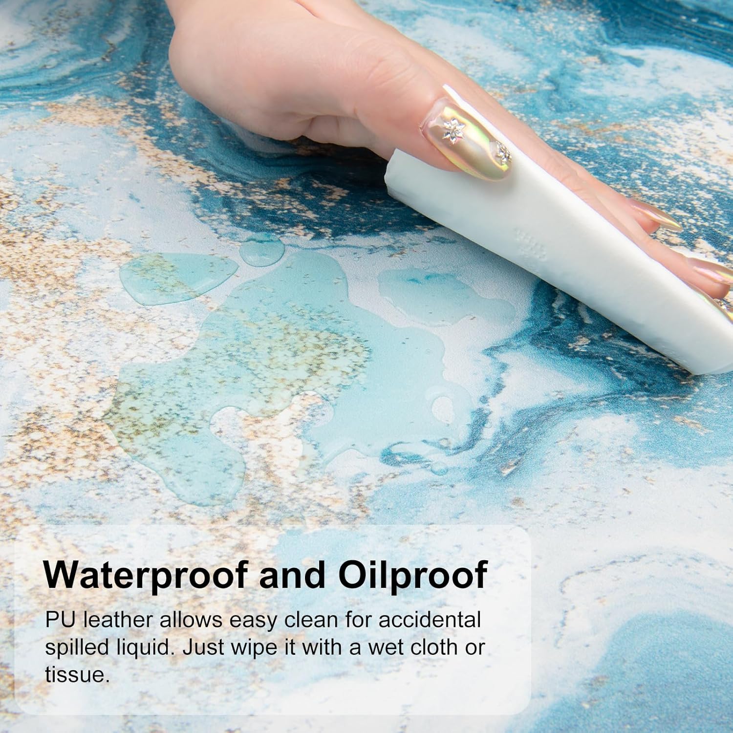 QIYI Desk Pad Large Keyboard and Mouse Pad for Laptop Computer, PU Leather Desk Cover Protector, Desk Décor Accessories for Office Home Work Writing Gaming 31.5" x 15.7" - Blue White Marble