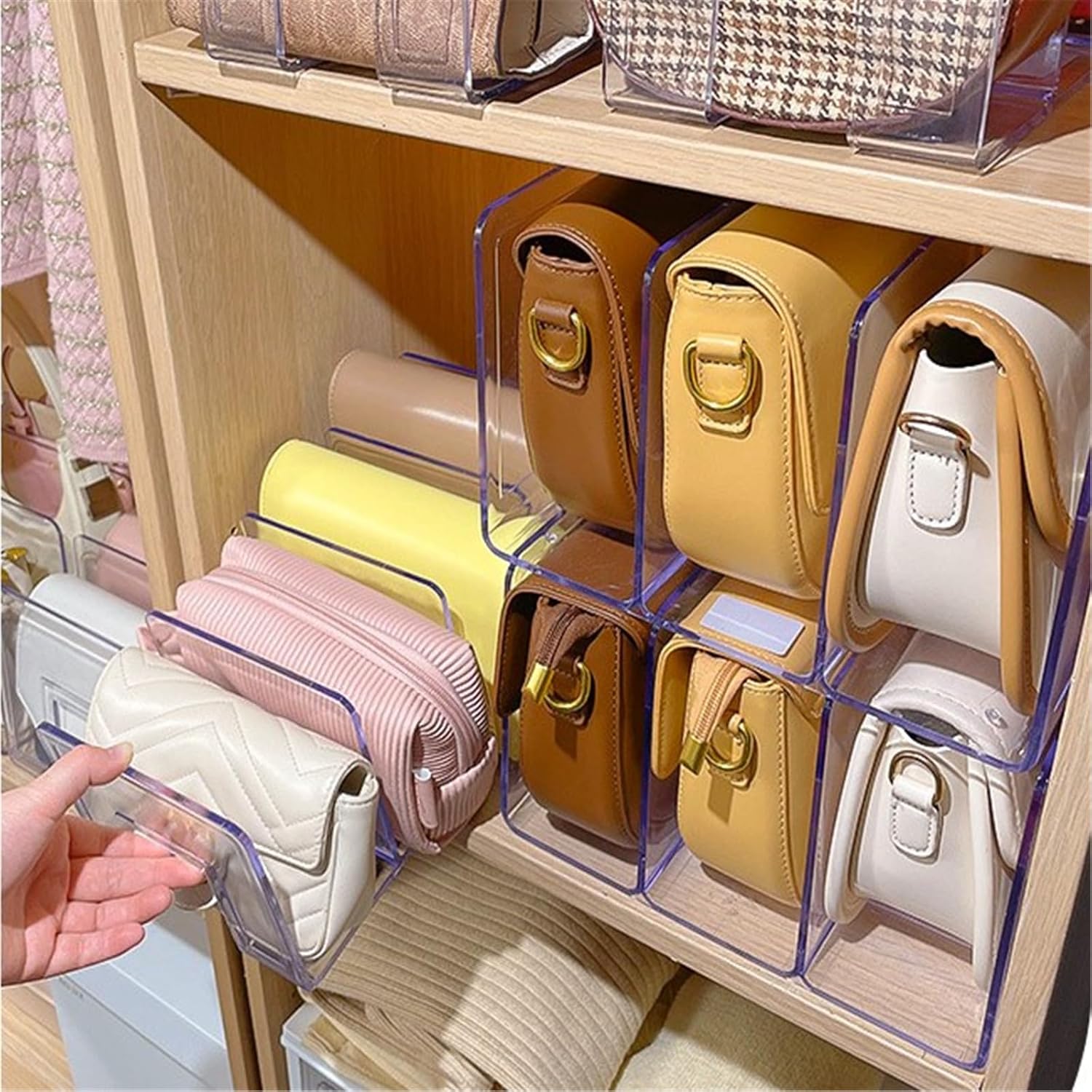 YAGELI Clear Acrylic Desk File Sorter Purse/Handbag Organizer Clutch Divider Mesh Folder Office Supplies Stand Bookshelf (3 Sections) (2Pack-4Sections)