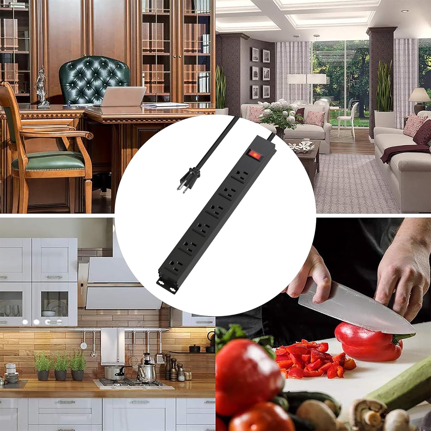 - MANY CHOICES:Heavy duty power strip with a variety of combinations of different number of jacks and different cord lengths to choose from. It meets all kinds of needs in life, and is very suitable for home, office, industrial, workshop, store and so on.