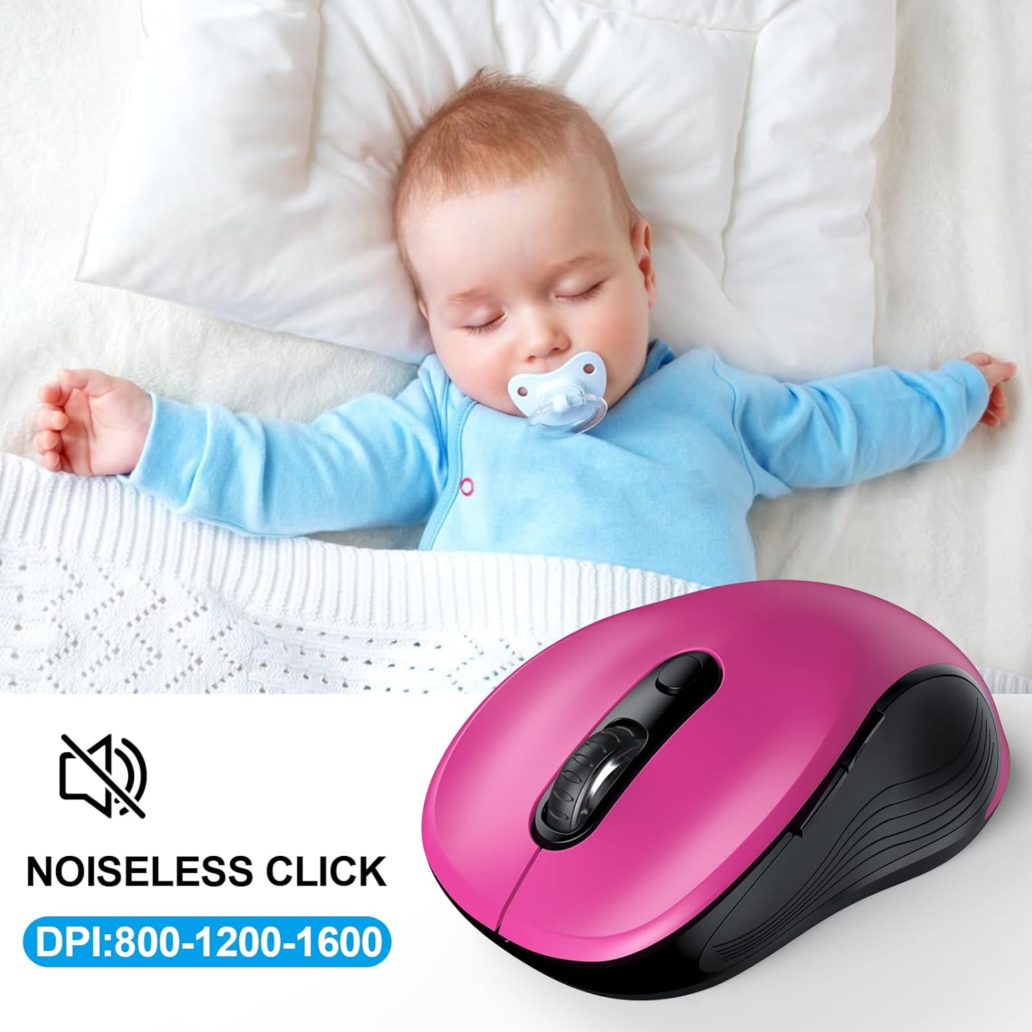 WisFox 2.4G Wireless Mouse for Laptop, Ergonomic Computer Mouse with USB Receiver and Type-C Adapter, 3 Adjustable Levels, 6 Button Cordless Wireless Mice for Windows Mac PC Notebook (Fuchsia)