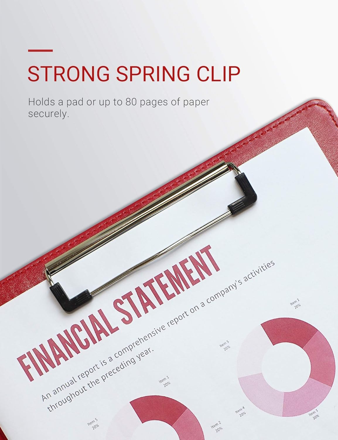 Mymazn Padfolio Clipboard Folder Portfolio, Faux Leather Storage Clipboard with Cover for Legal Pad Holder Letter Size A4 Writing Pad for Business School Office Conference Notepad Clip Boards (Red)