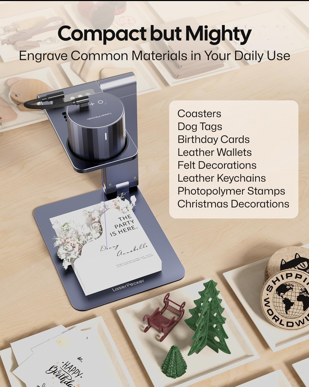 - Functional & Handy: LaserPecker LP1 Pro CAN engrave paper board, cardboard, fabric, felt, leather, wood, pita pockets etc. CAN’T engrave Metals, Stone, Plastic, Reflective Materials, pull the page down and check more details